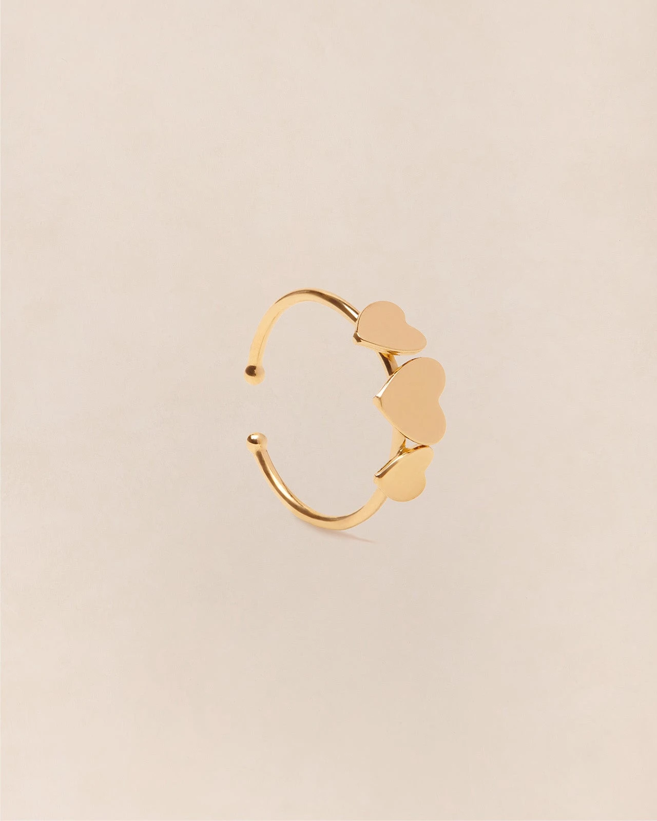 Des coeurs dorés et montés sur une bague fine, dans nos ateliers parisiens.