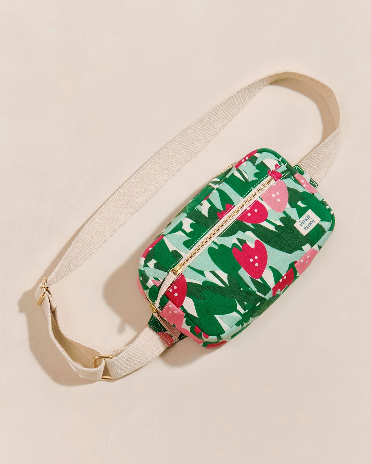 Imprimé tulipes allover, taille extra-love, poches qui pensent à tout, sangle adaptable et look parfait pour fleurir au soleil.