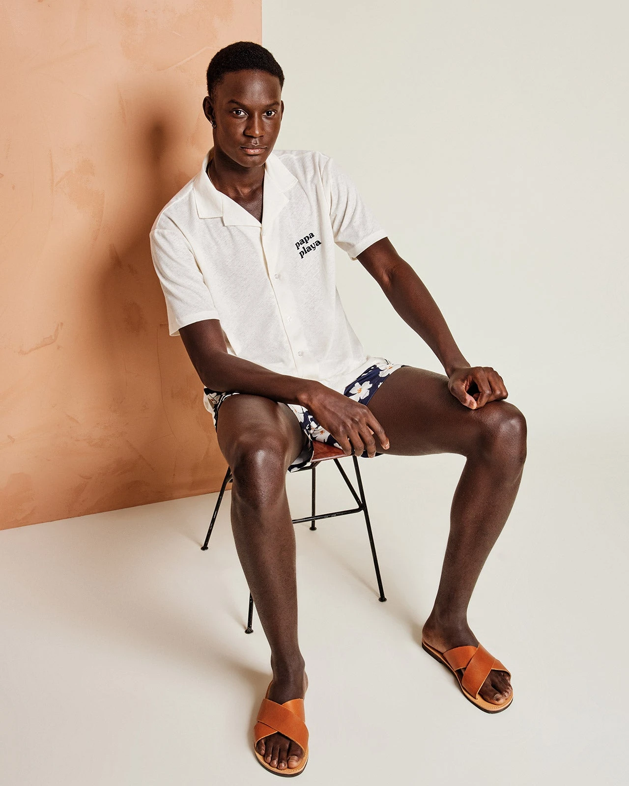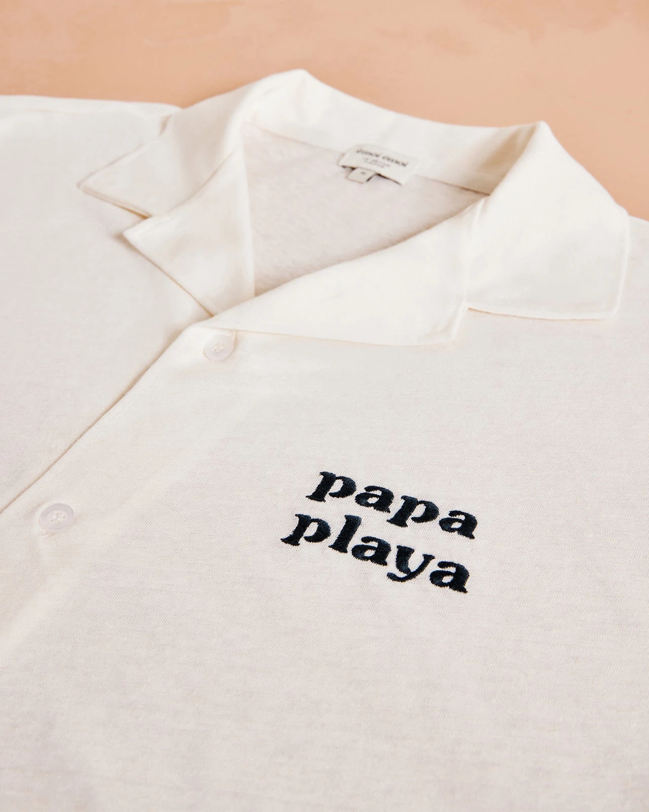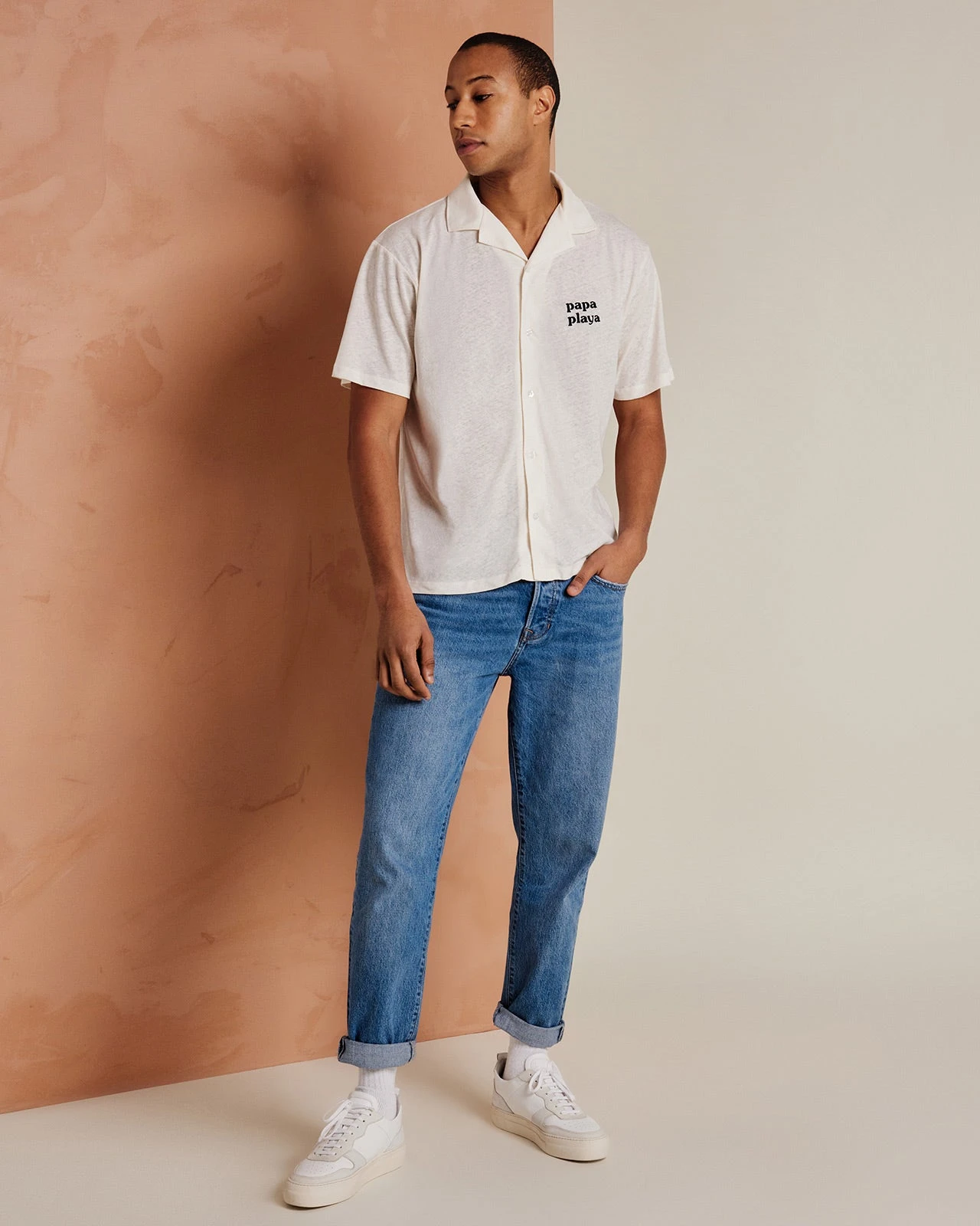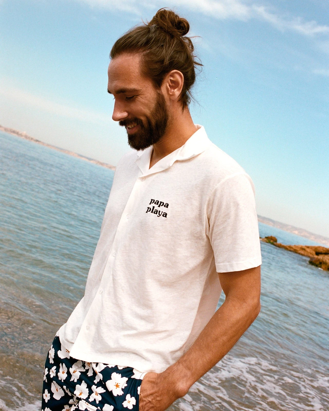 Papa Playa, la version summer du mec le plus solaire de la famille. Lui, c’est le soleil de la siesta, le vamos de la playa, le sel de la vida loca. Une chemise en coton et lin pour le plus beau des plagistes ! Parce qu’il y a matière à s’y sentir muy bien.