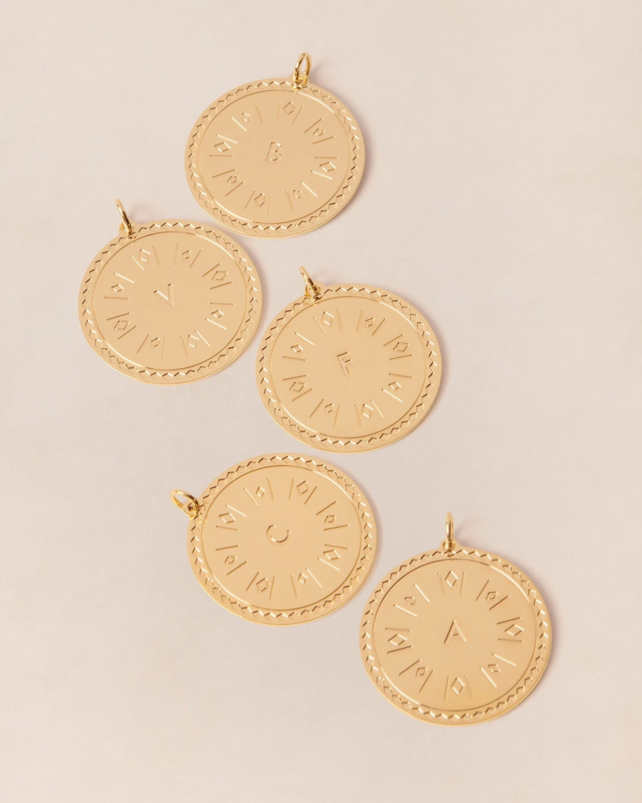 – La médaille Initiale dorée à l’or fin 24 carats – 25mm