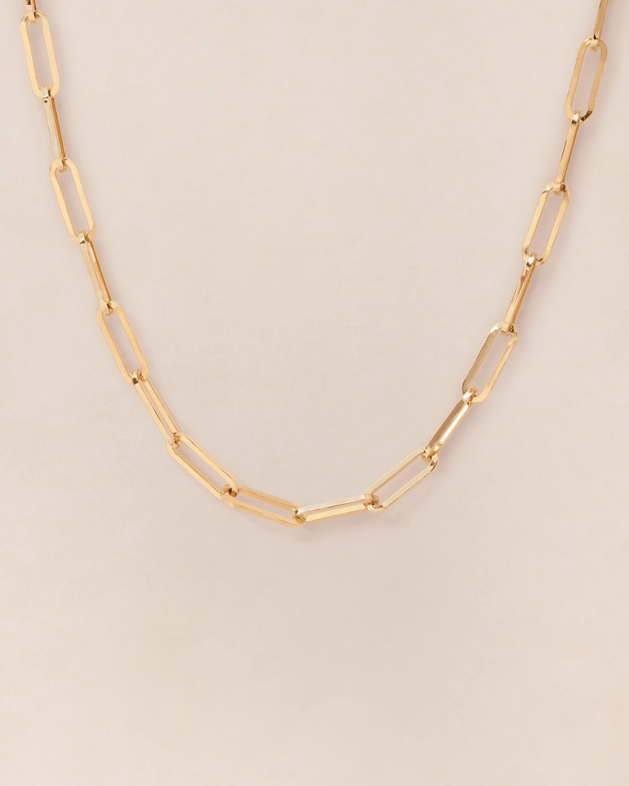 – Le collier maillons XL doré à l’or fin 24 carats disponible en 3 longueurs : 40 cm ras-du-cou, 50 cm classique, 60 cm sautoir