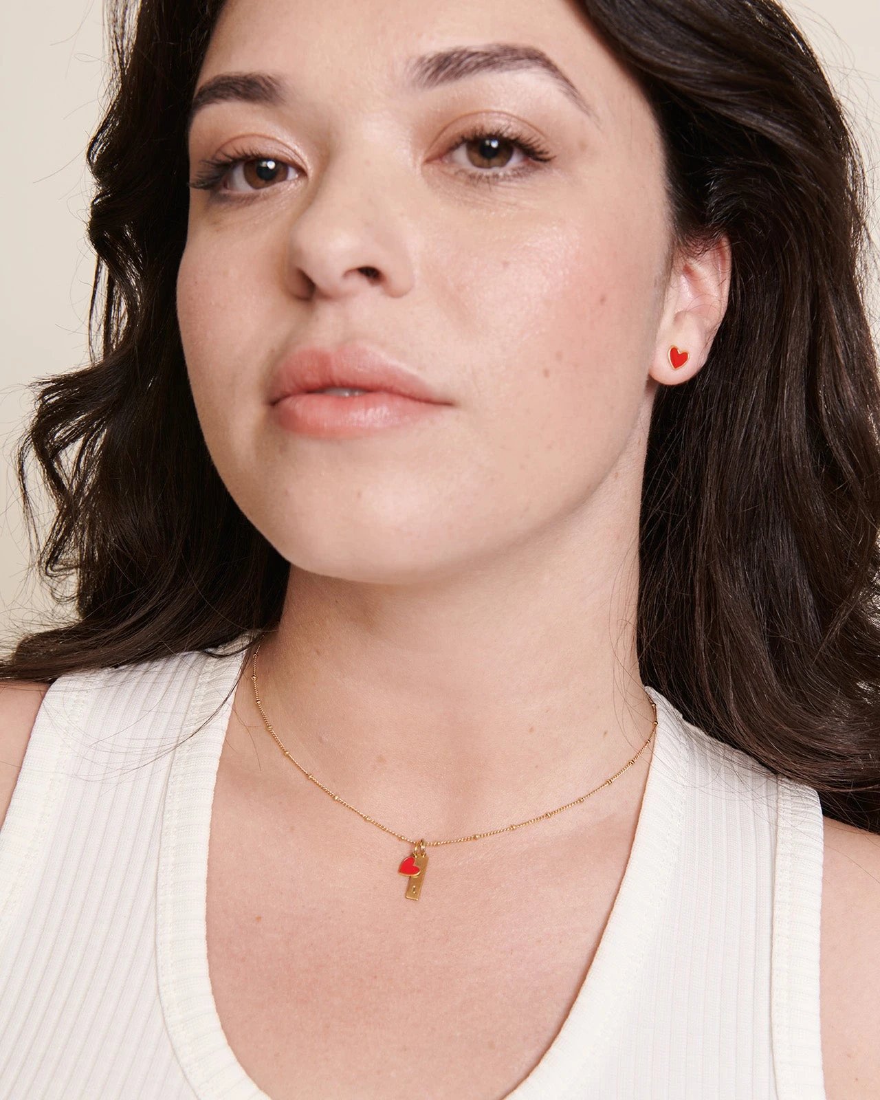 – Médaillon Manon cœur rouge en laiton 7mm, plongé dans un bain d’or 24 carats, colorées à la main