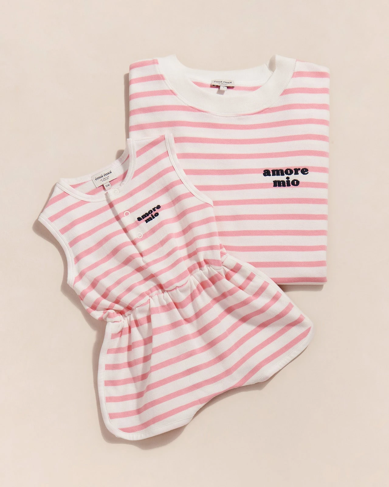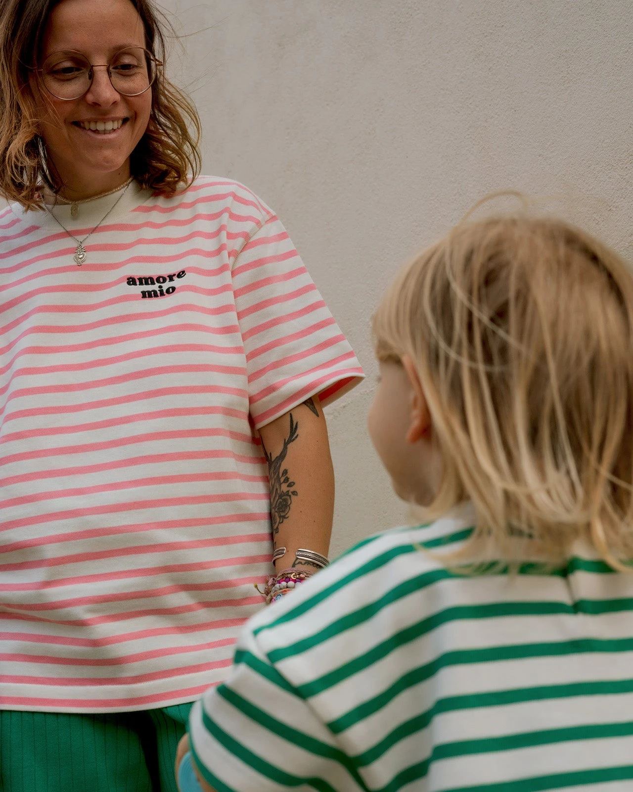 – À porter avec son Ti amo club : marinière verte unisexe, marinière rose femme, marinière vert enfant et la mini combinaison bébé