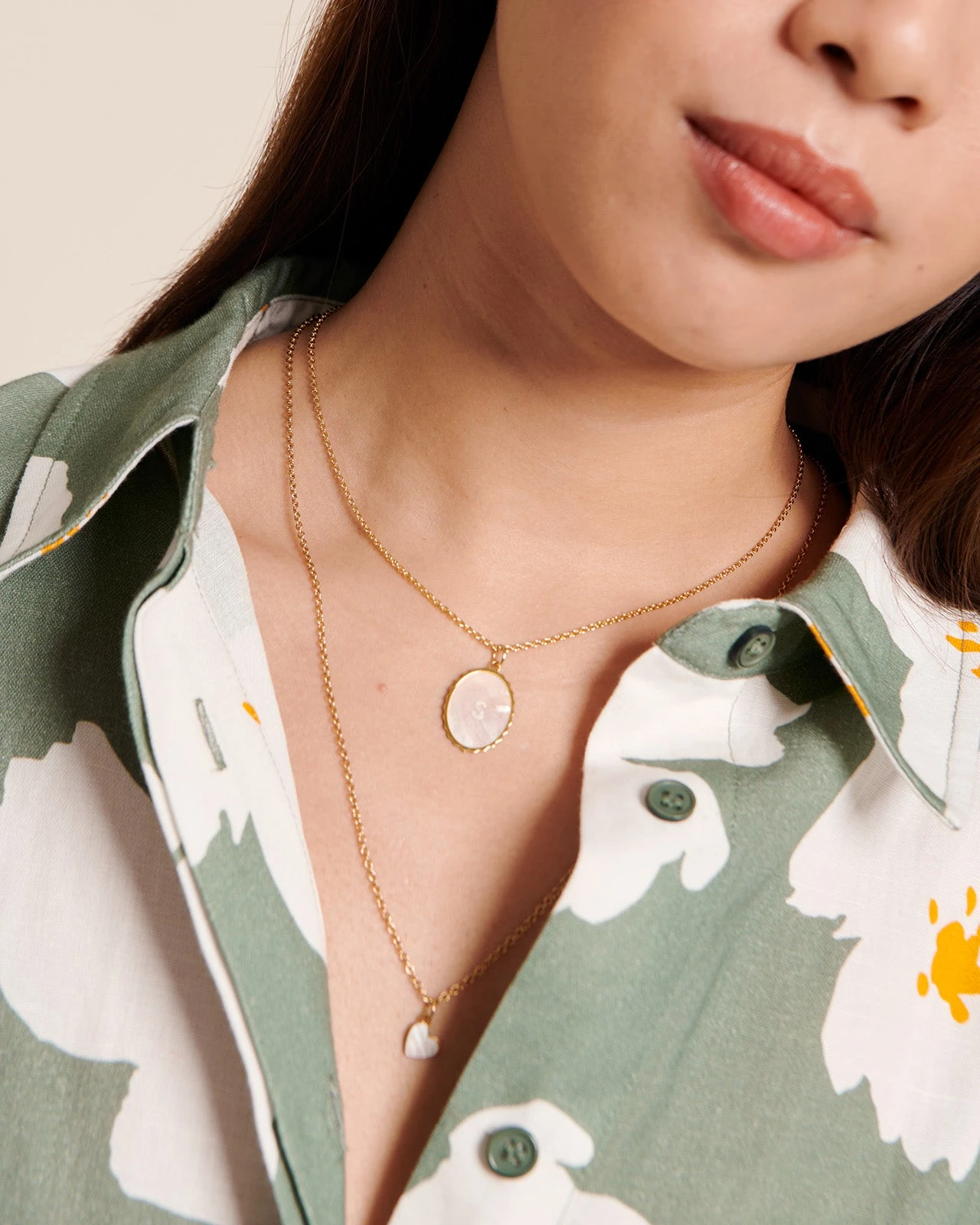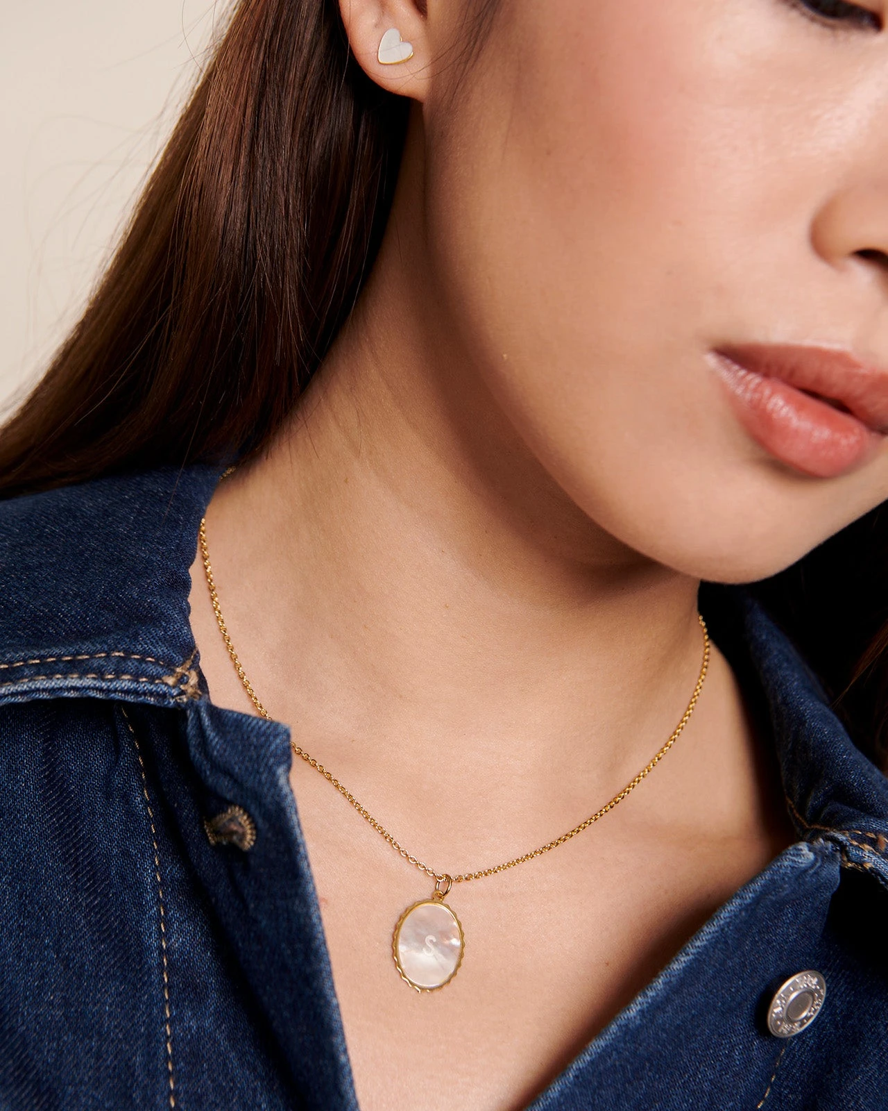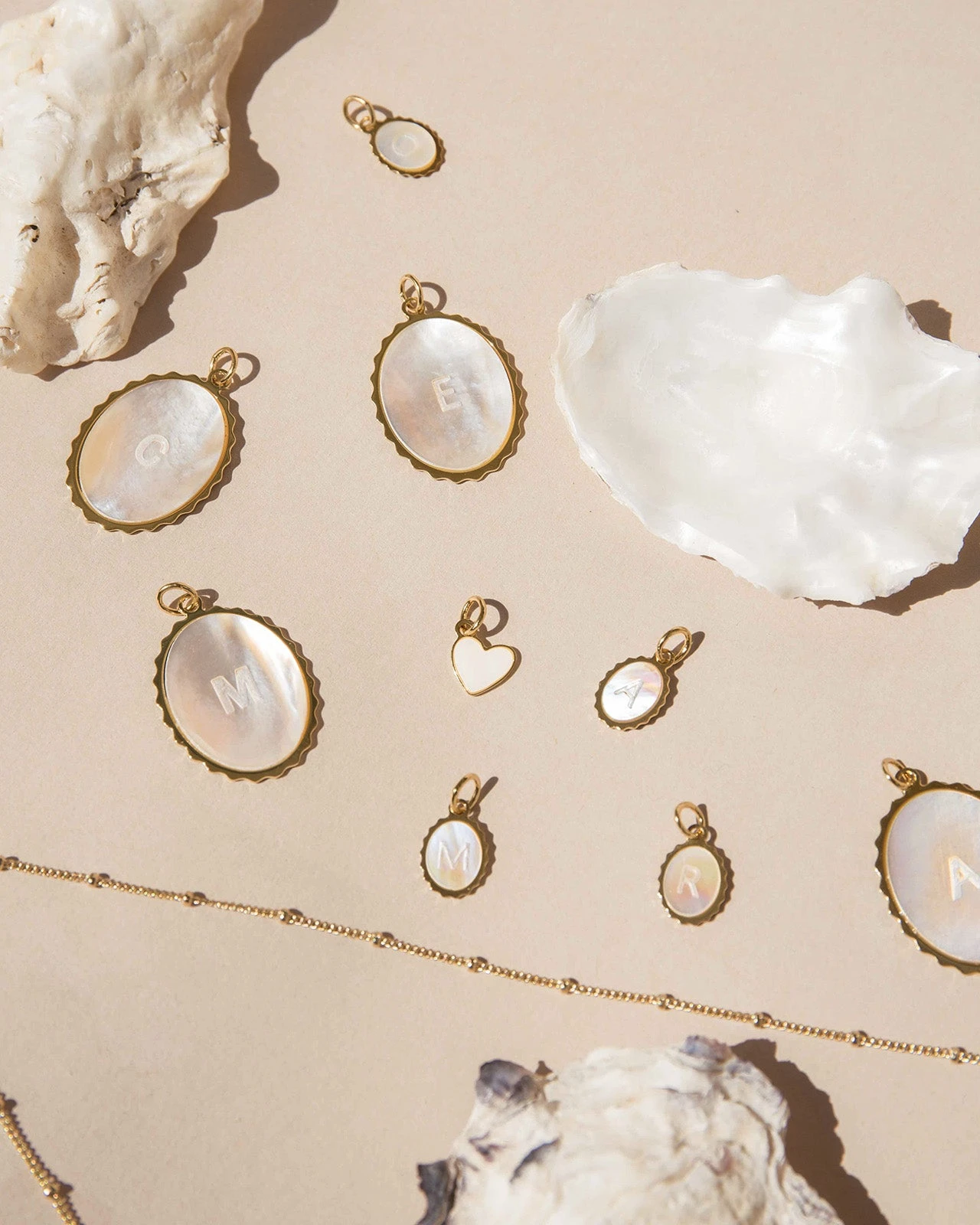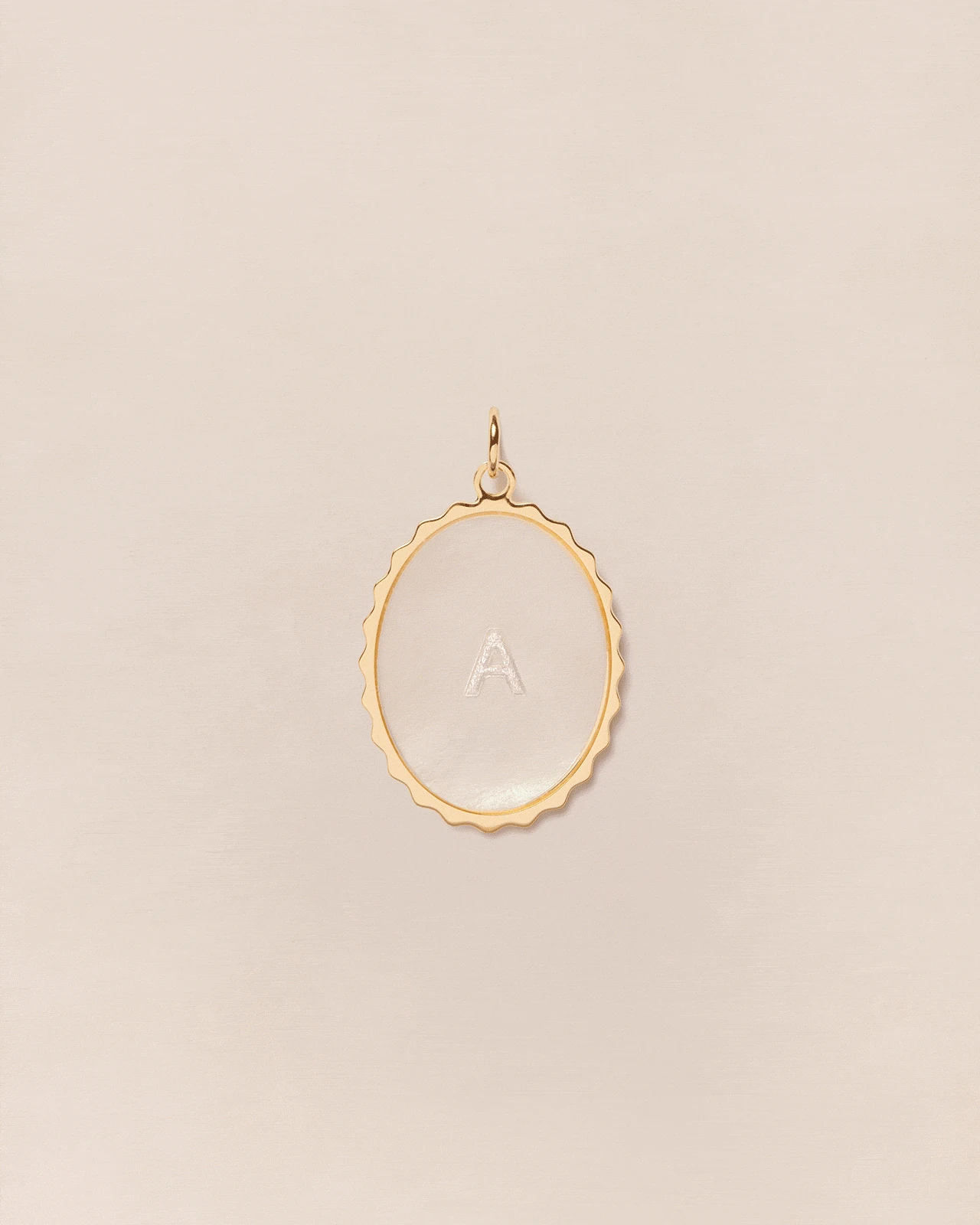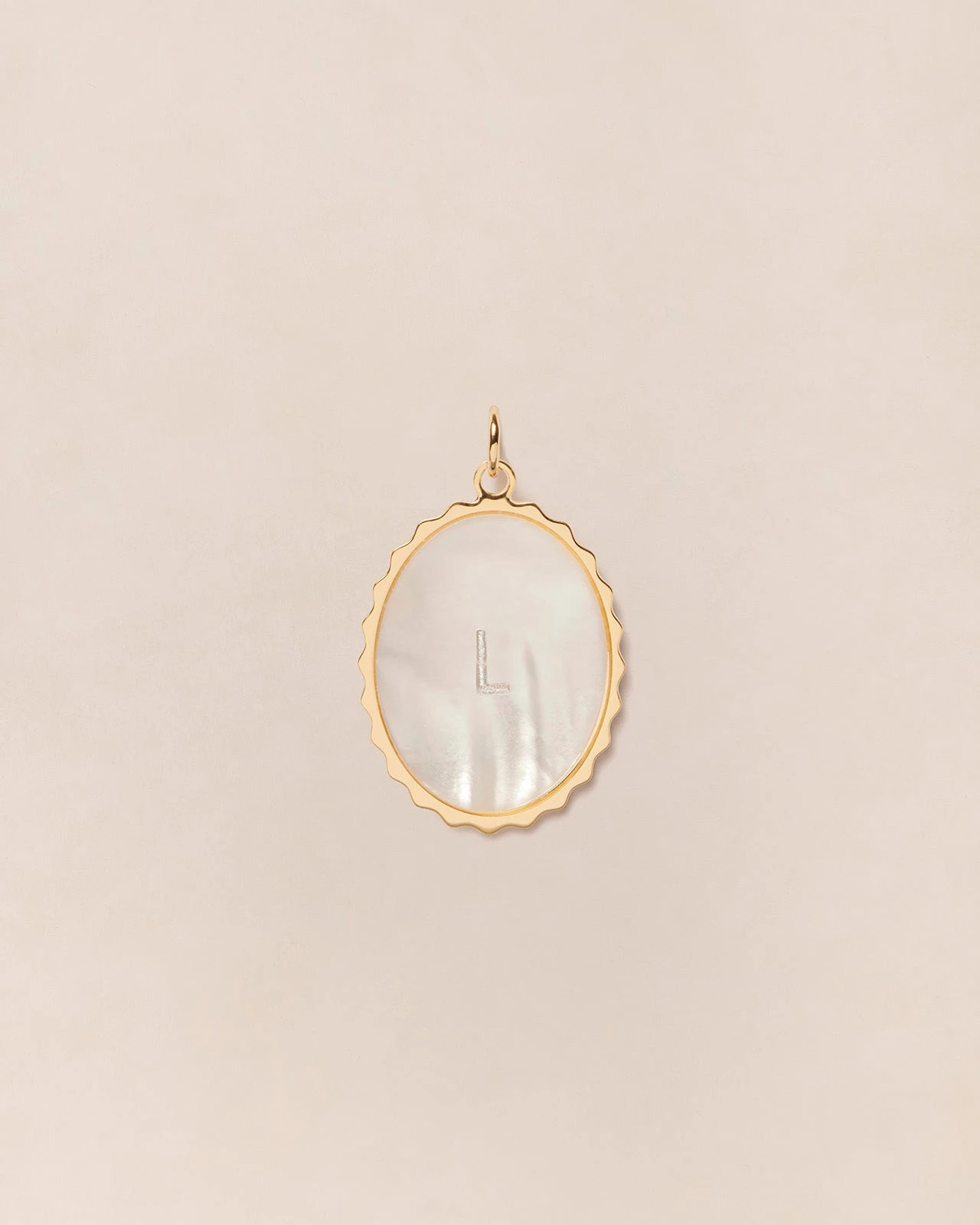 – Médaille initiale en nacre gravée, disponible en 8mm et 22mm