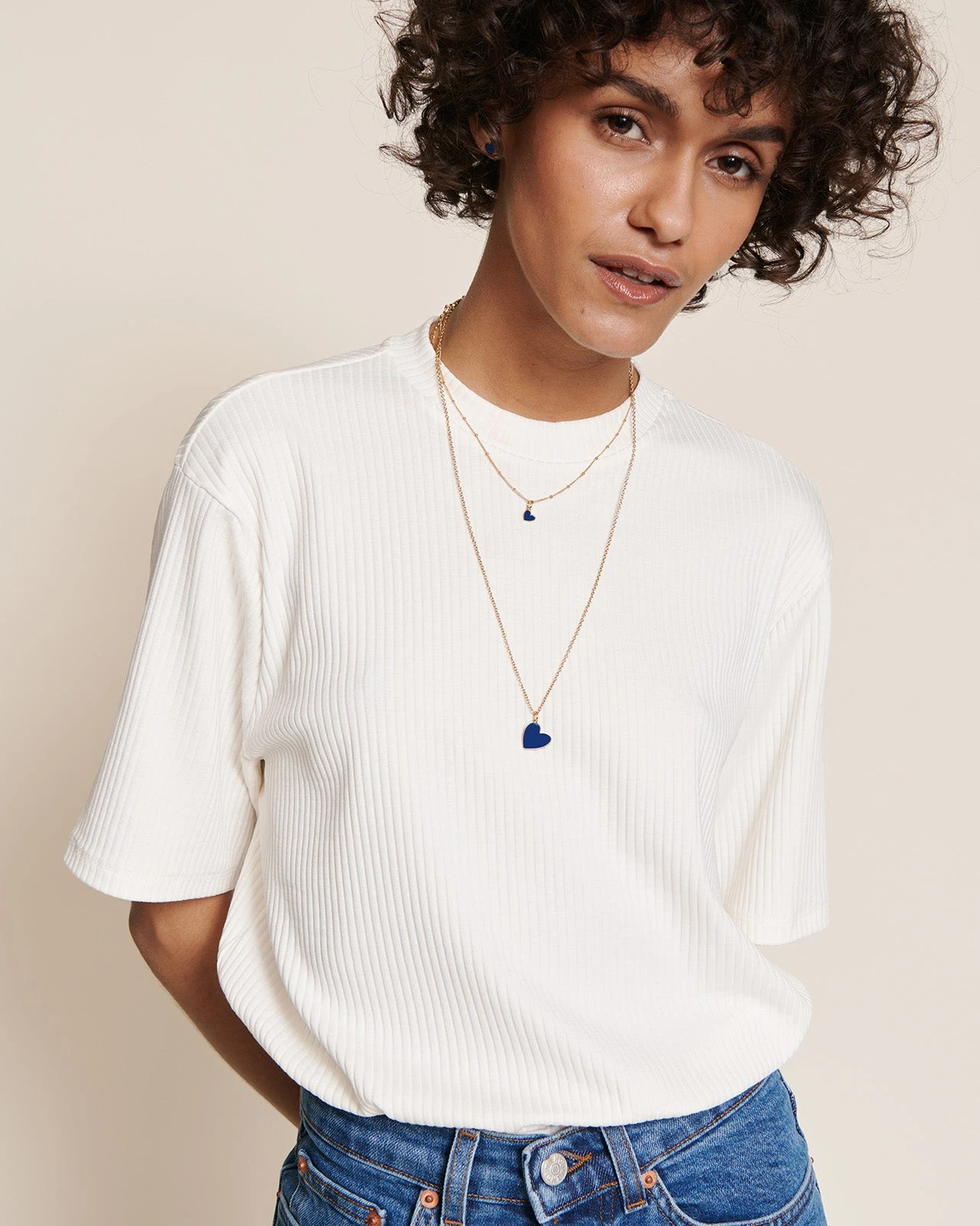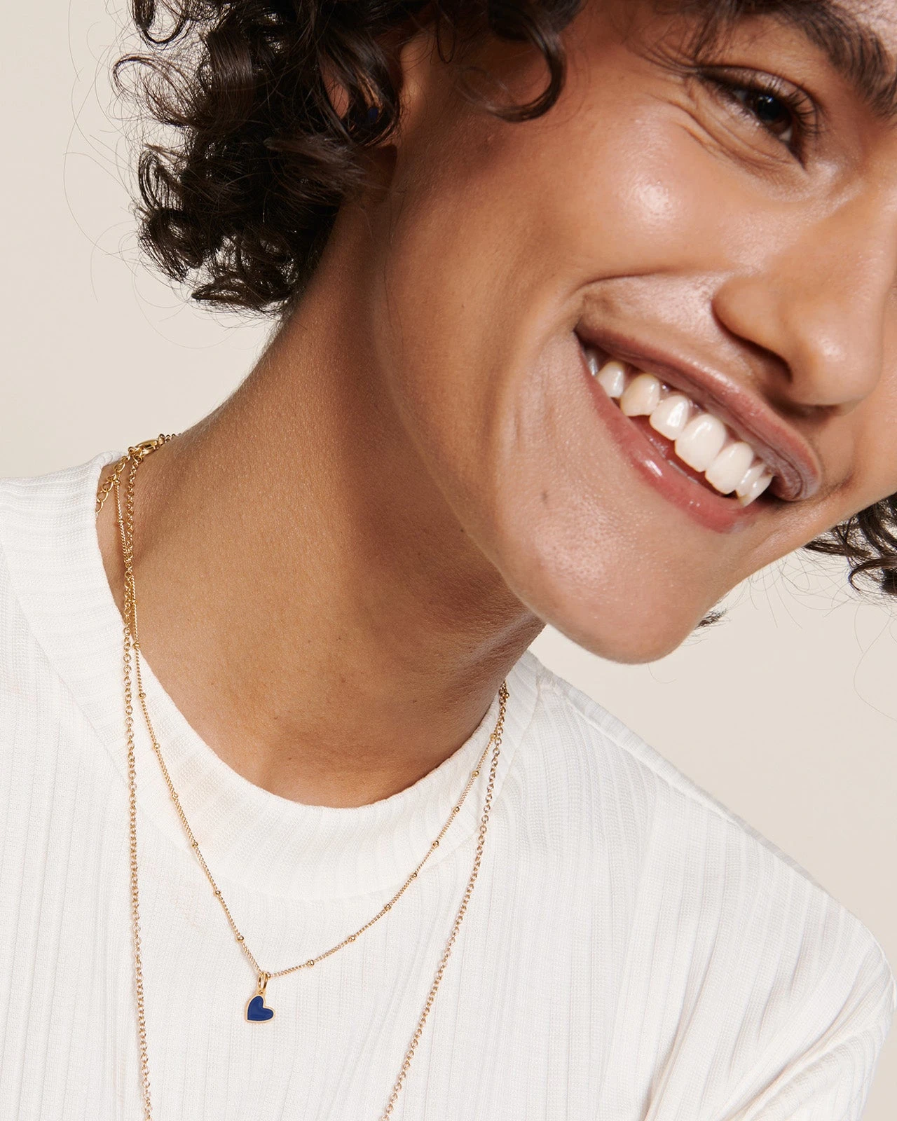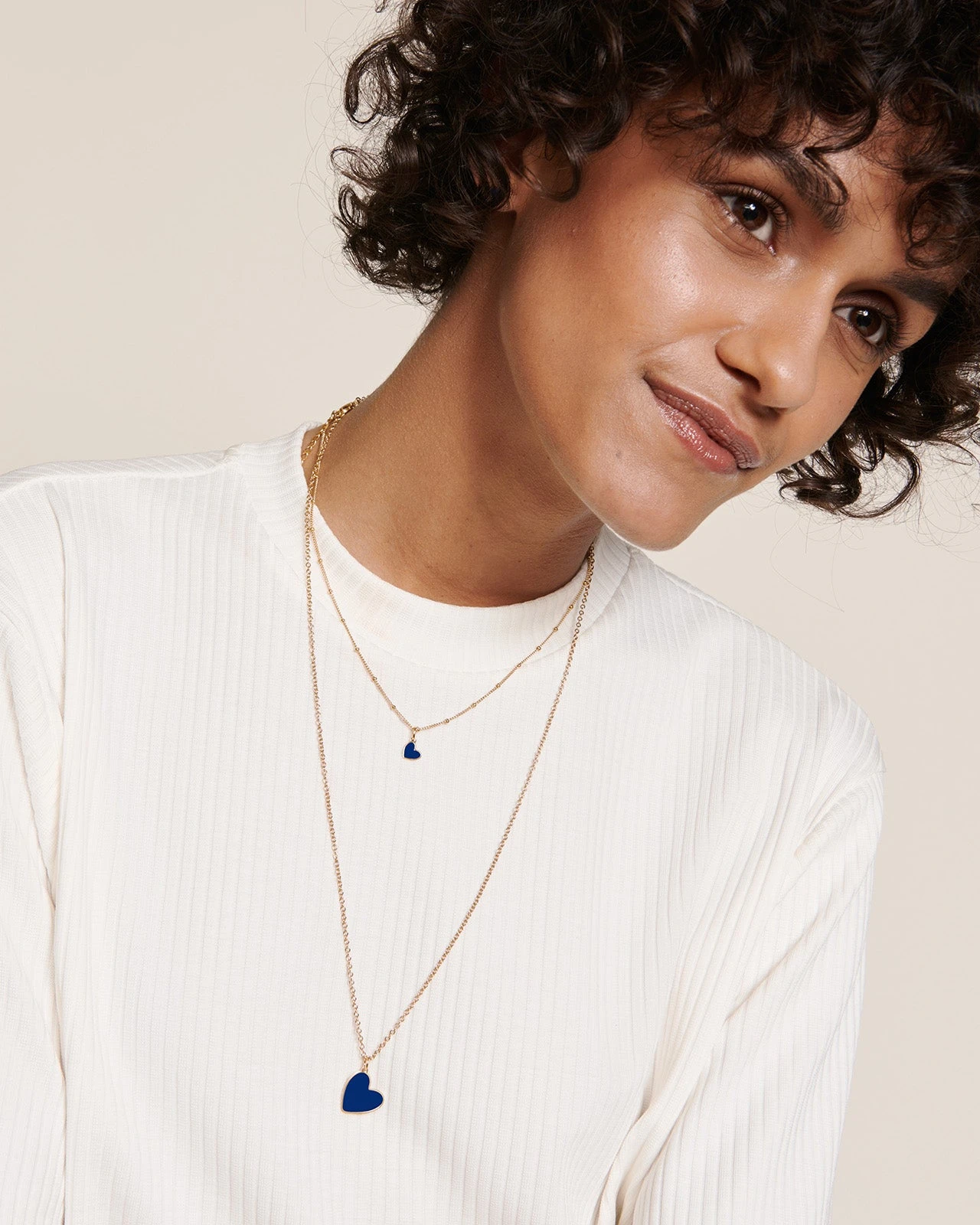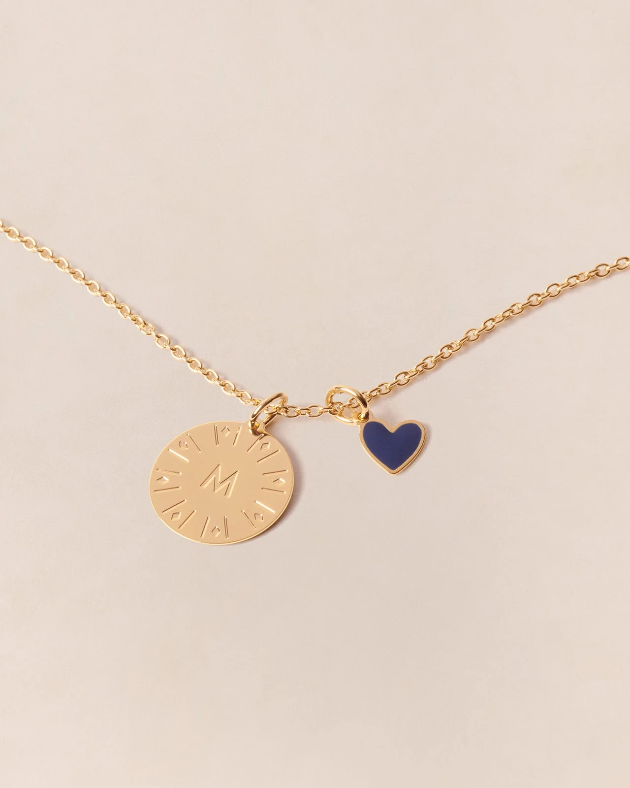 – Pendentif iconique cœur, en laiton plongé dans un bain d’or 24 carats.