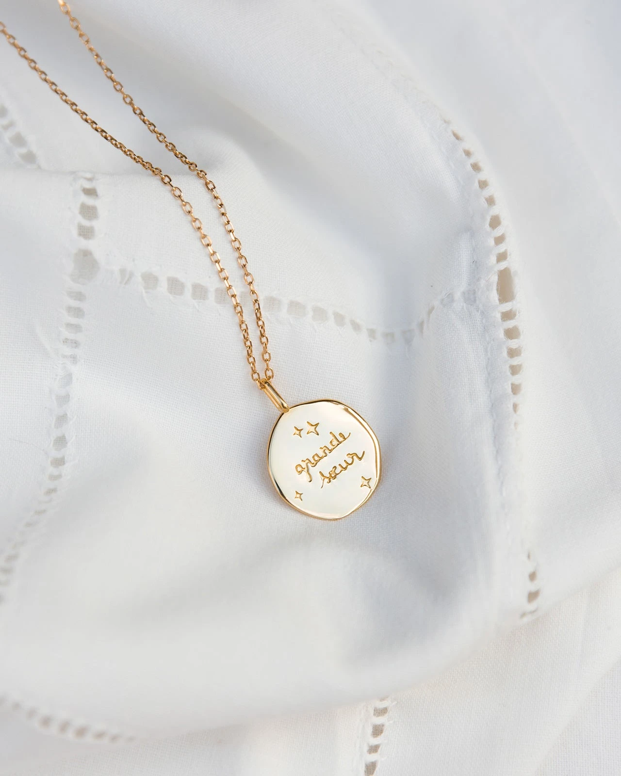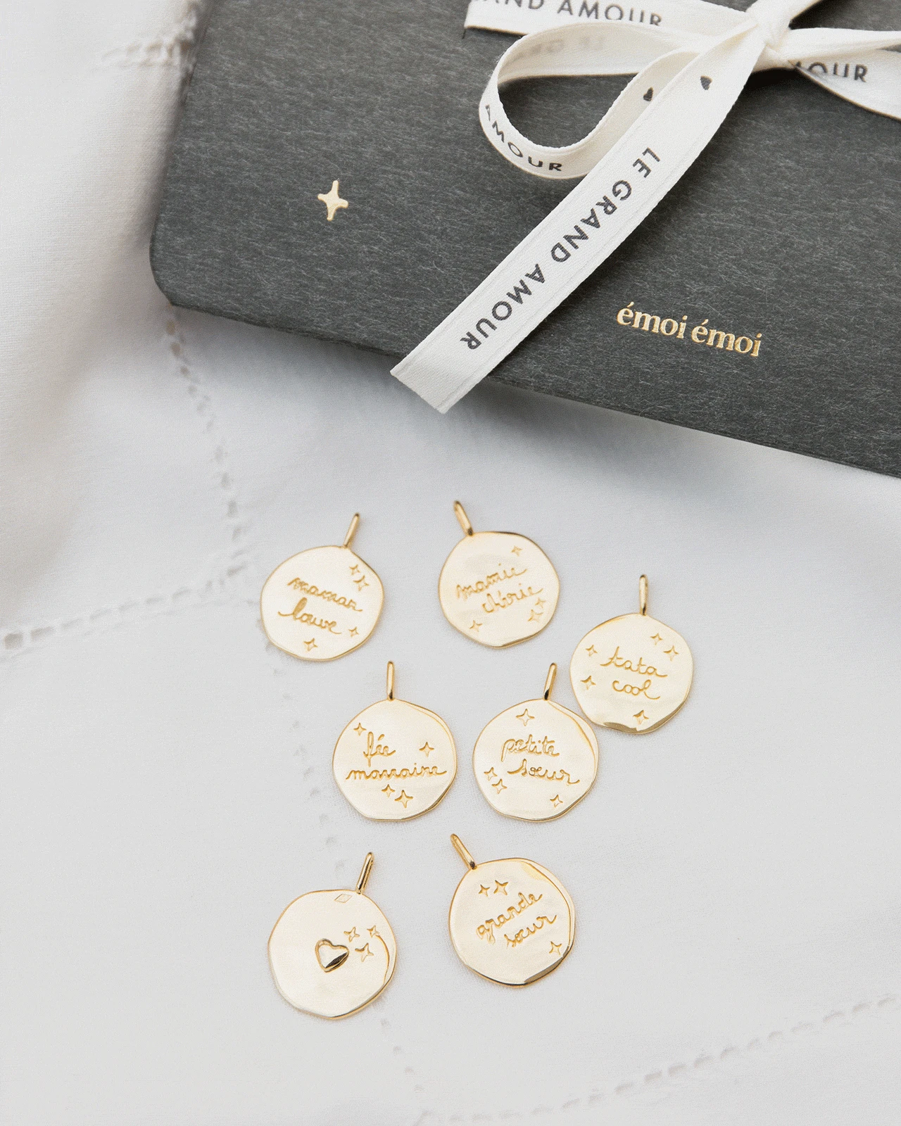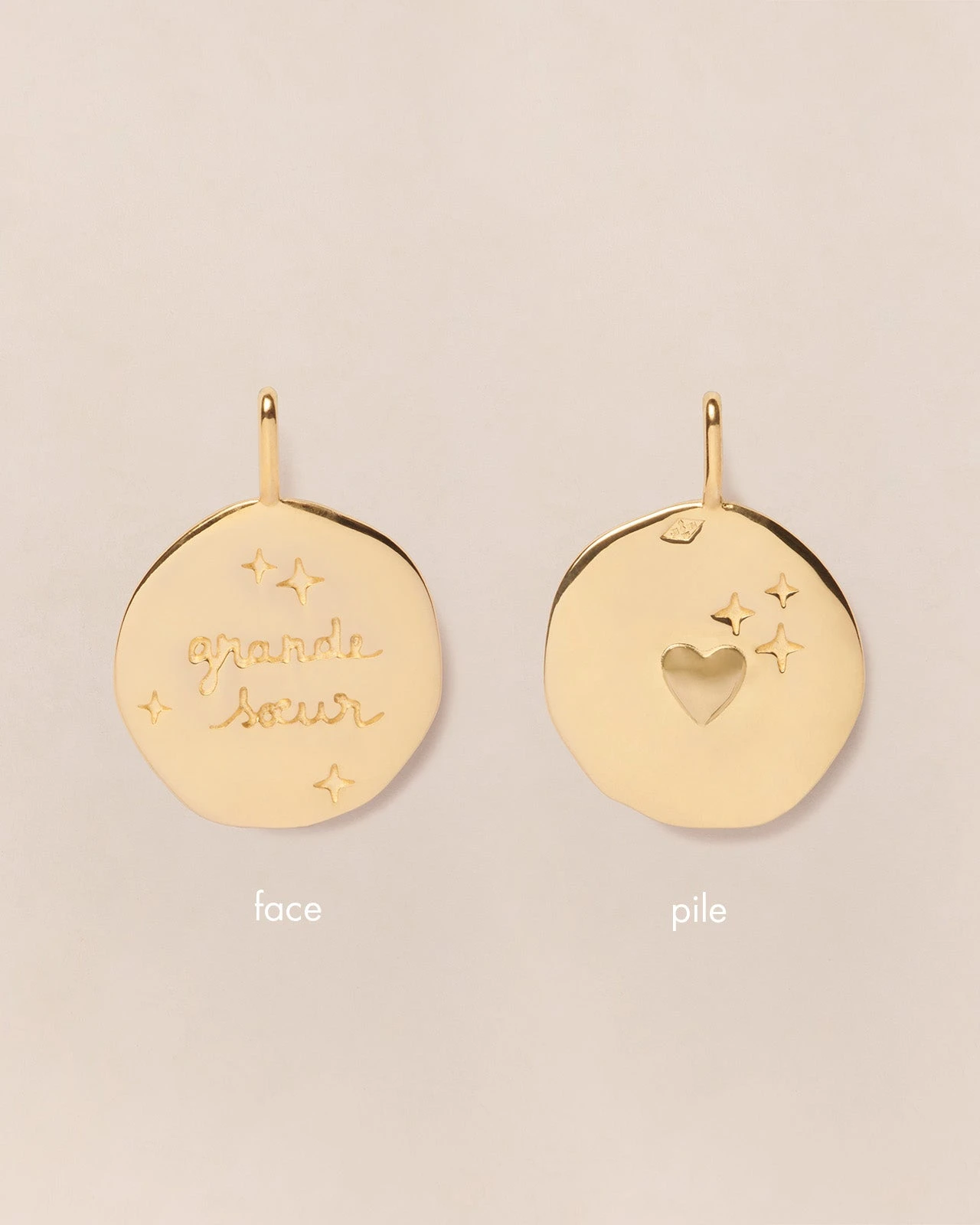 – Nos médailles sont frappées au verso avec le poinçon de Maître (nos deux losanges iconiques) qui garantit que votre bijou a été créé par le Studio créa d’émoi émoi