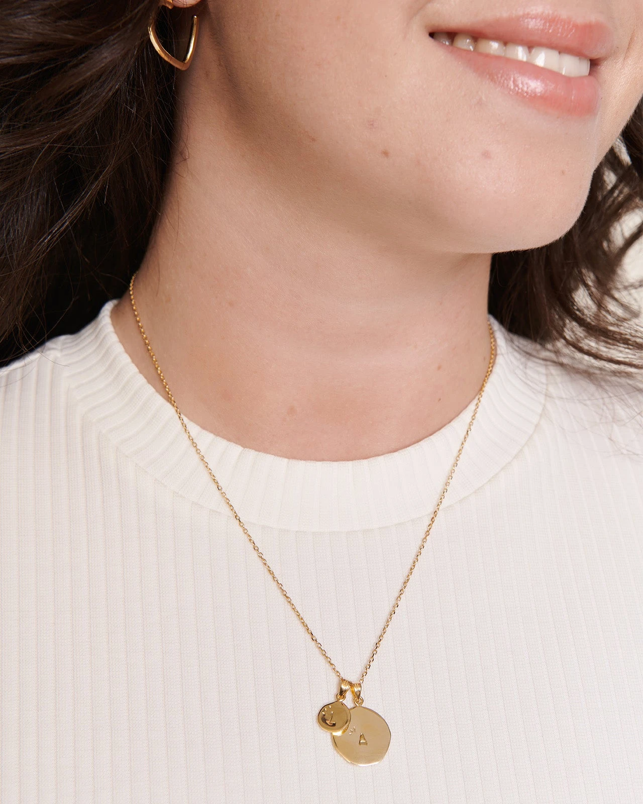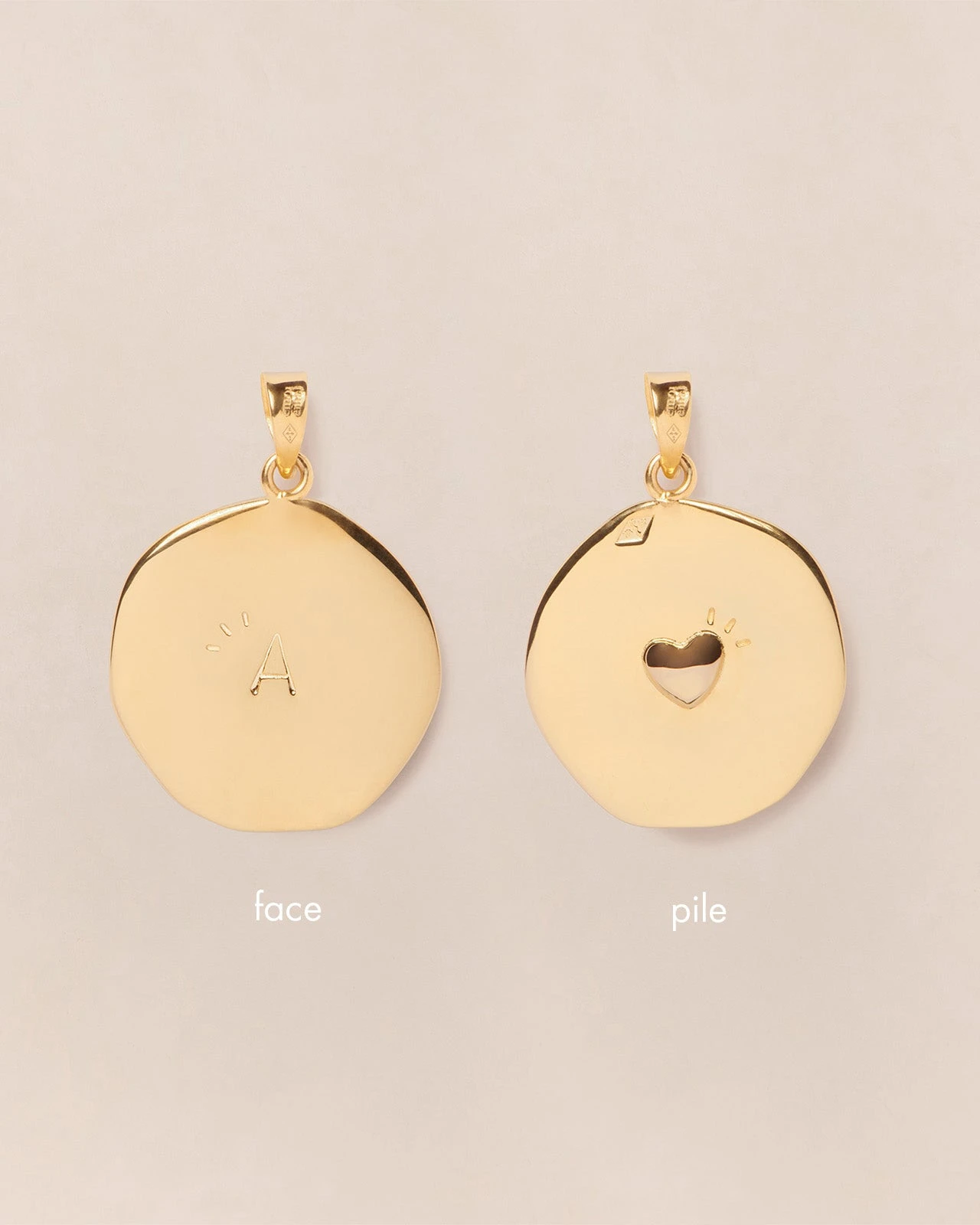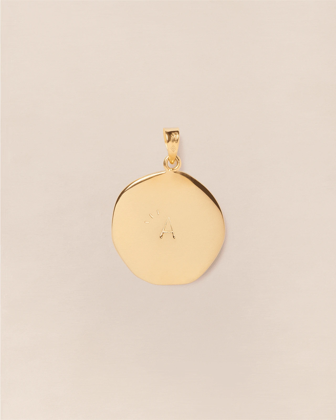 – Médaille Initiale 17 mm en vermeil : argent massif 950 millièmes, doré avec 5 microns d’or 18 carats.