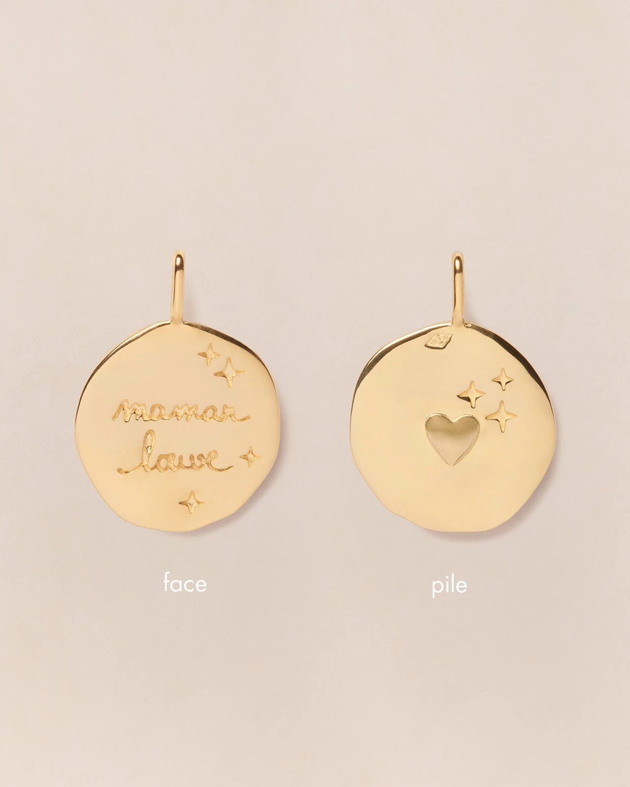 – Belle gravure « Maman Louve » et ses étoiles au recto, coeur en relief au verso