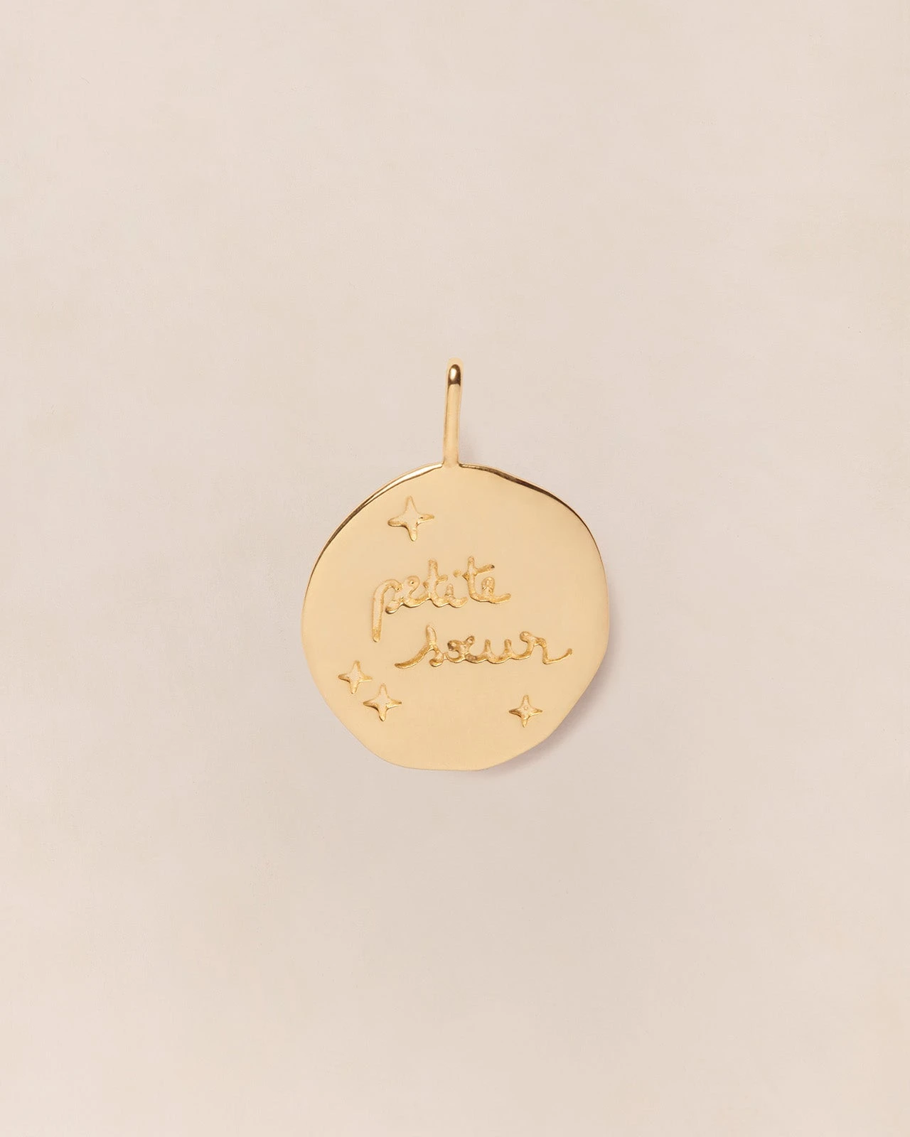 – Belle gravure « Petite Sœur » et ses étoiles au recto, cœur en relief au verso