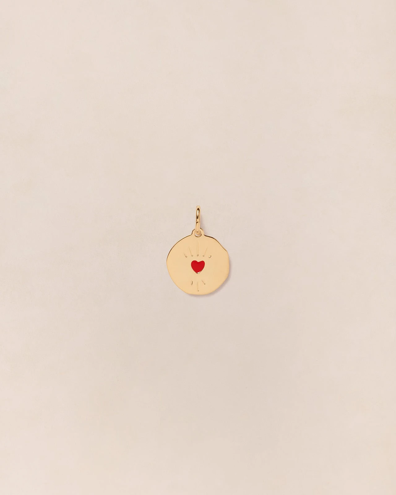 Un cœur rouge qui rayonne, porté tout près du cœur. Notre médaille Maya déclare l’amour en rouge et or.
