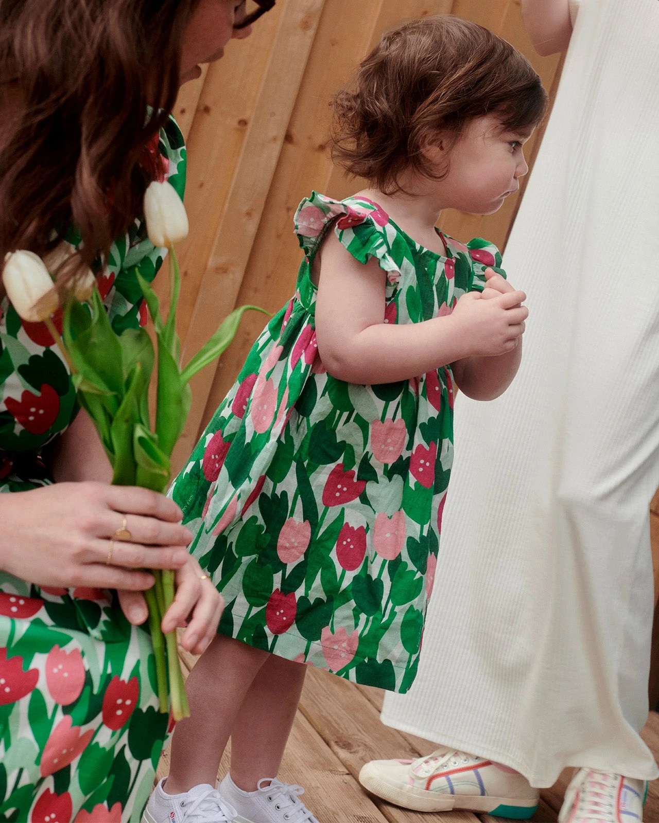Pour les petites : dos nu, taille élastiquée, volants⊠hip hip hip tulipes pour sa nouvelle robe préférée ! (Et la vÎtre aussi.)
