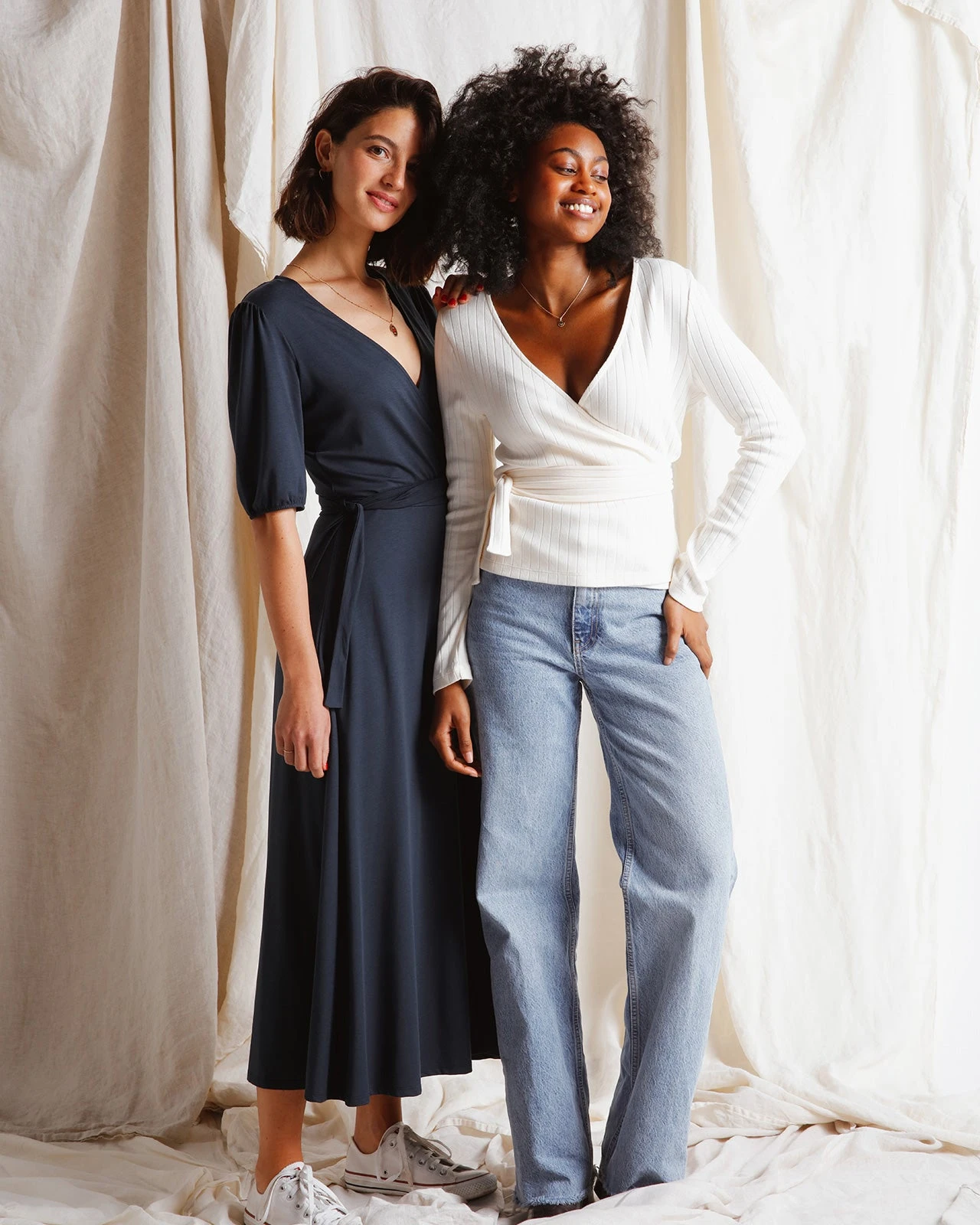 Un jersey de tencel et un coton tout doux et confortable qui magnifie toutes les silhouettes. Et un charbon profond qui a fait chavirer notre cœur au premier regard.
