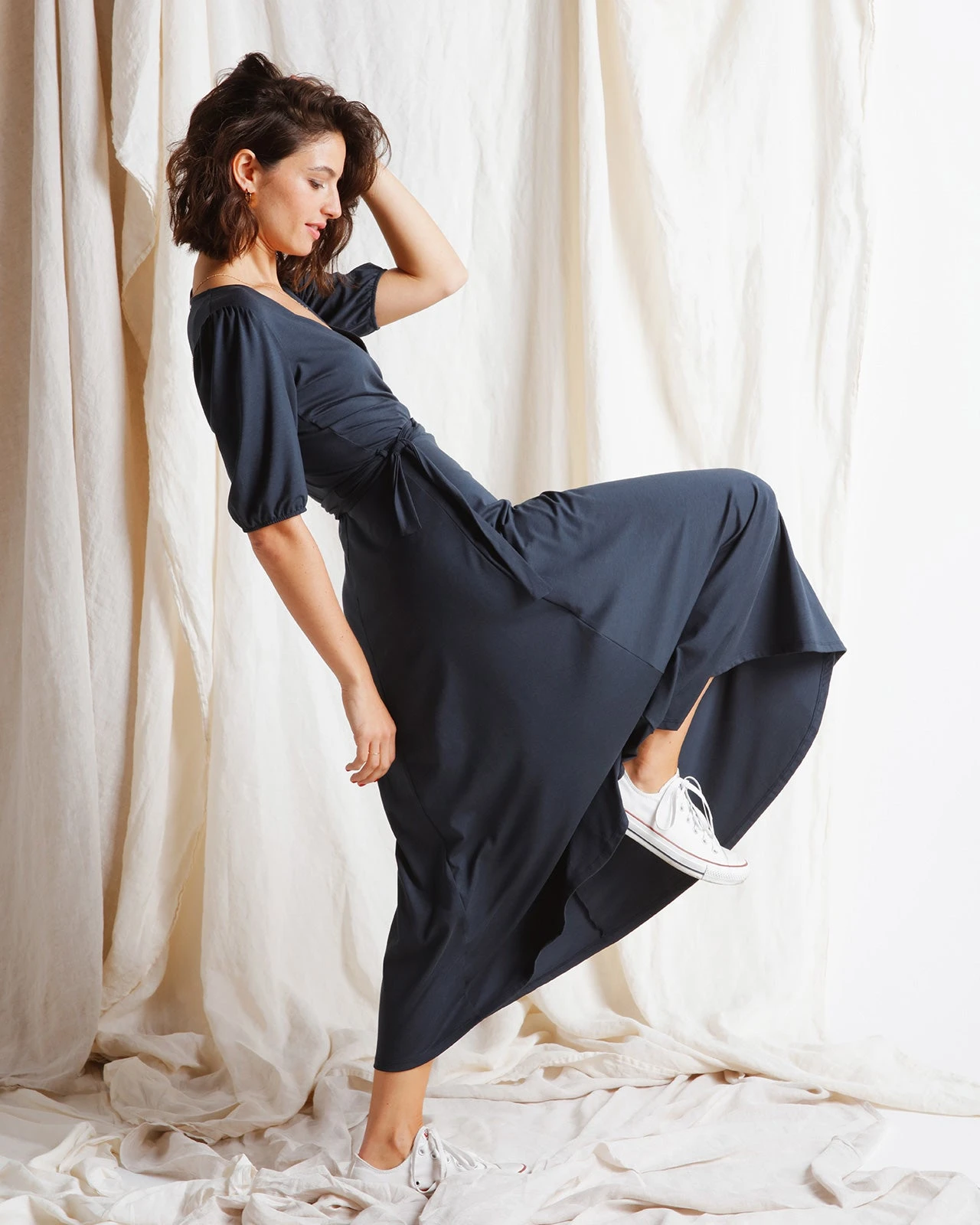 Rosie, c’est la robe qu’on ne veut plus quitter, la seconde peau qui laisse toutes les libertés, facilite la vie de femme, de maman sans faire l’impasse sur une coupe canon.