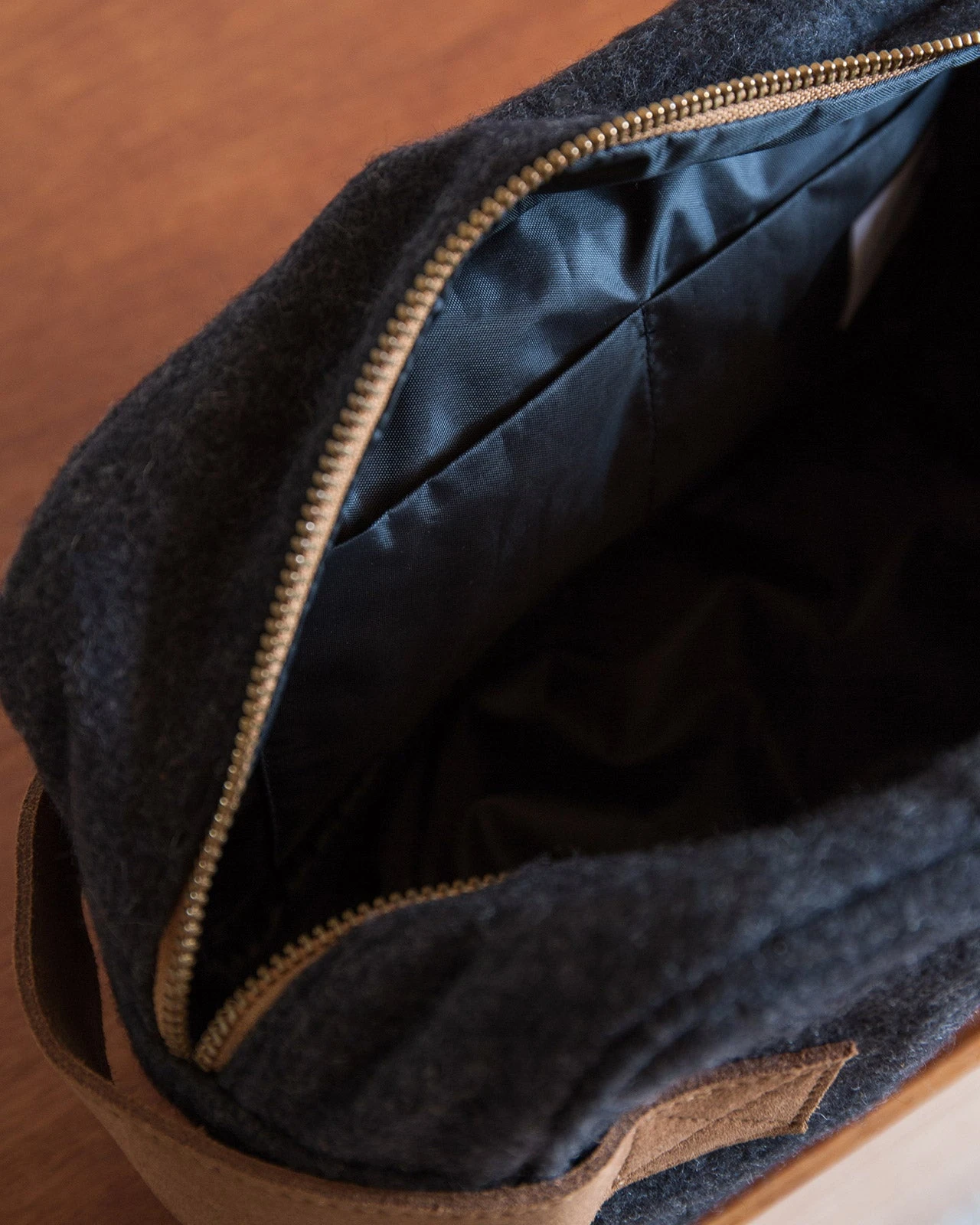 – Poche intérieure 19×8,5 cm divisée en deux compartiments égaux.