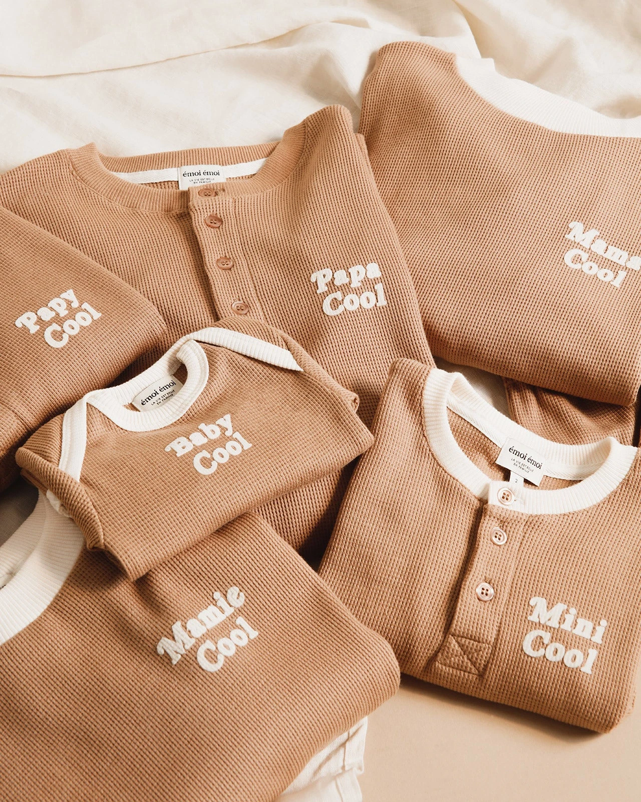 – À porter en famille : pyjamas gaufrés homme, femme et enfant disponibles avec nos imprimés iconiques « Cool »