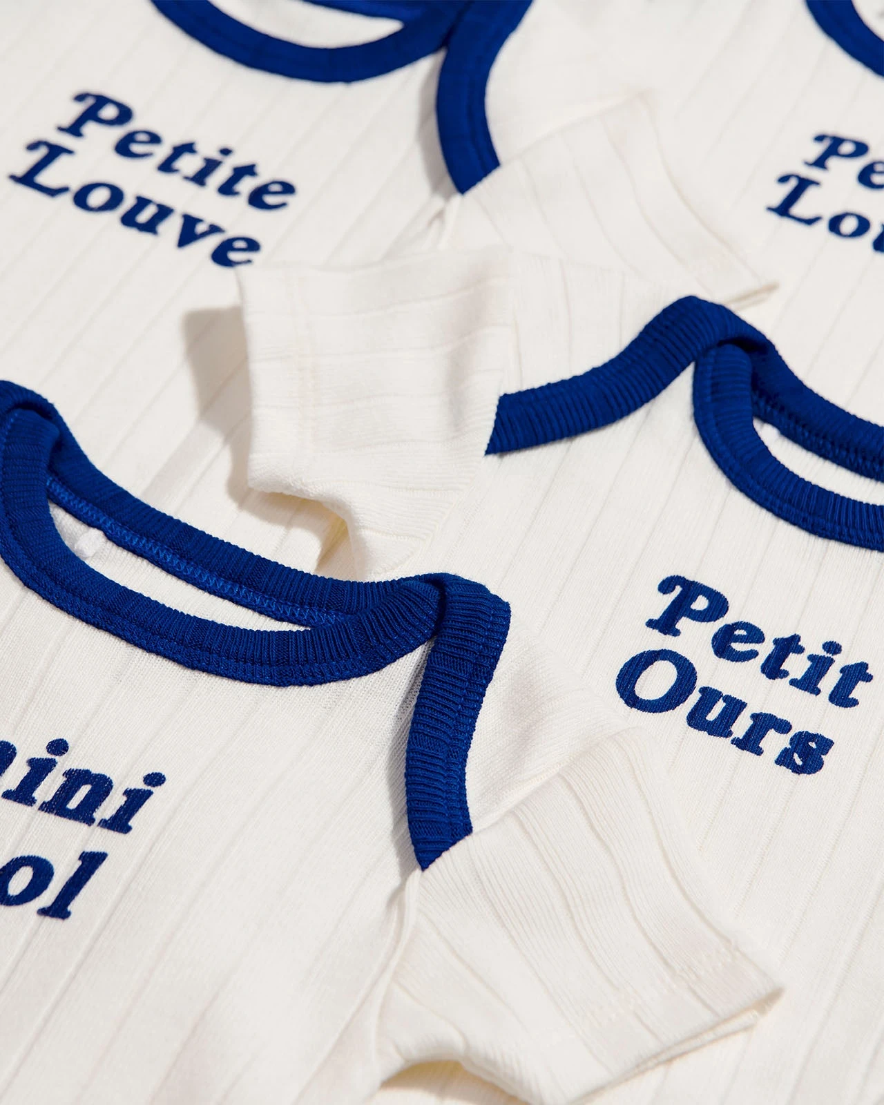 – Existe avec les messages « Mini cool », « Mini Poule », « Petit Ours », « Petit Loup » et « Petite Louve », aussi disponibles en sweats en molleton tout doux