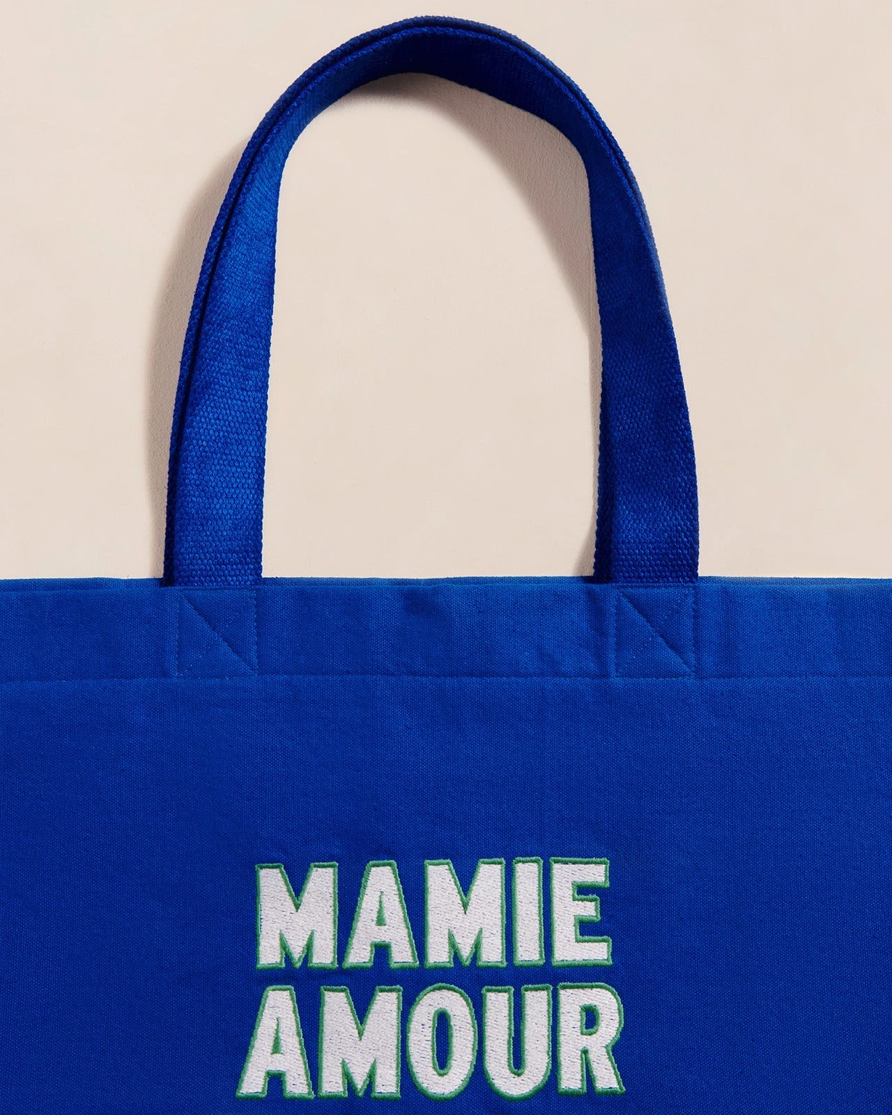 – Déclaration pour « Mamie amour » ou « Mama amour » brodée en crème et entourée d’un joli fil vert