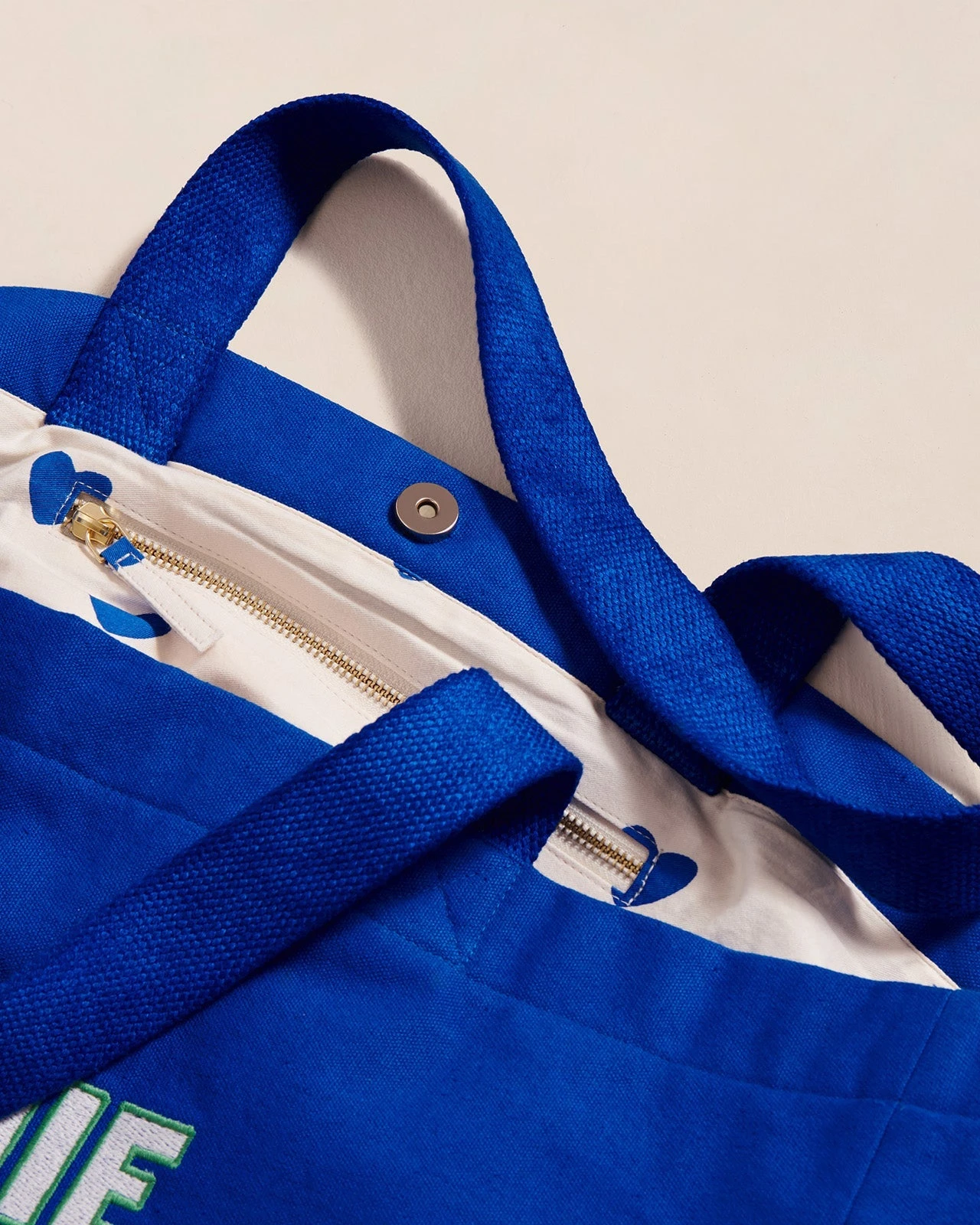 – Doublure imprimée Cœurs bleu signature.