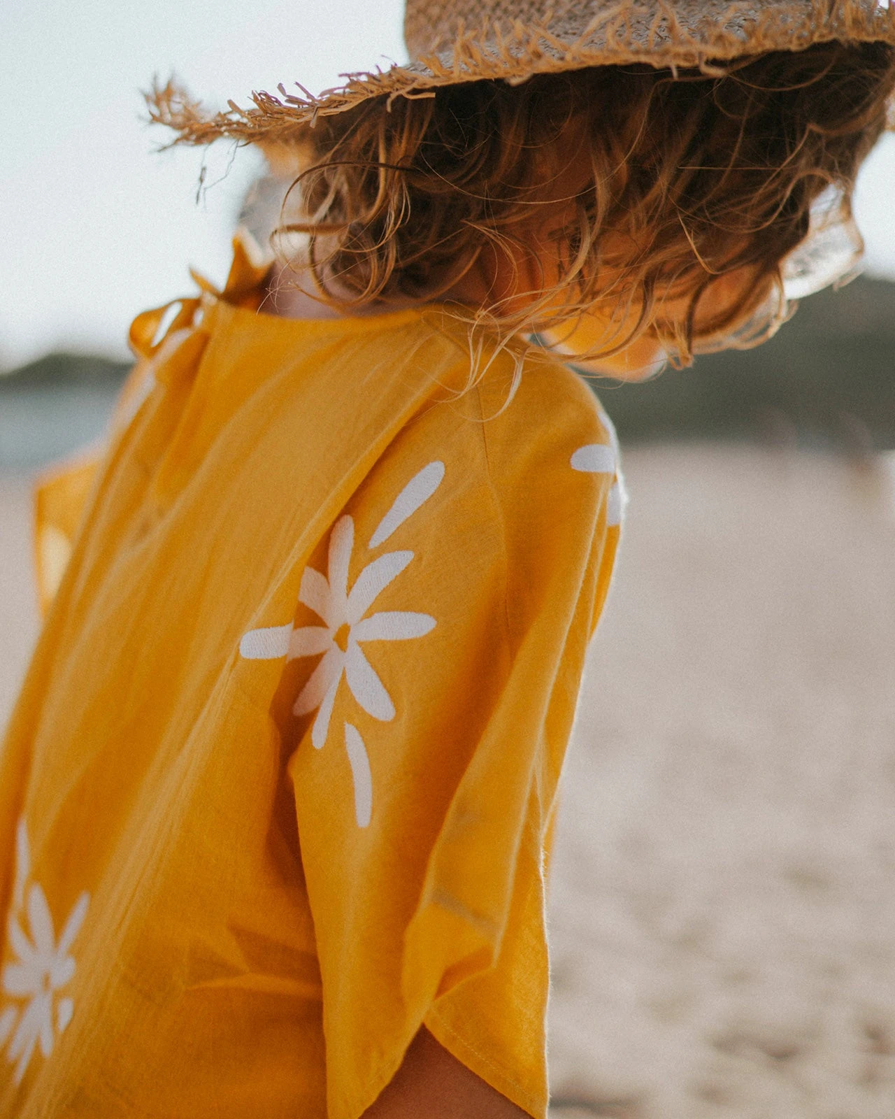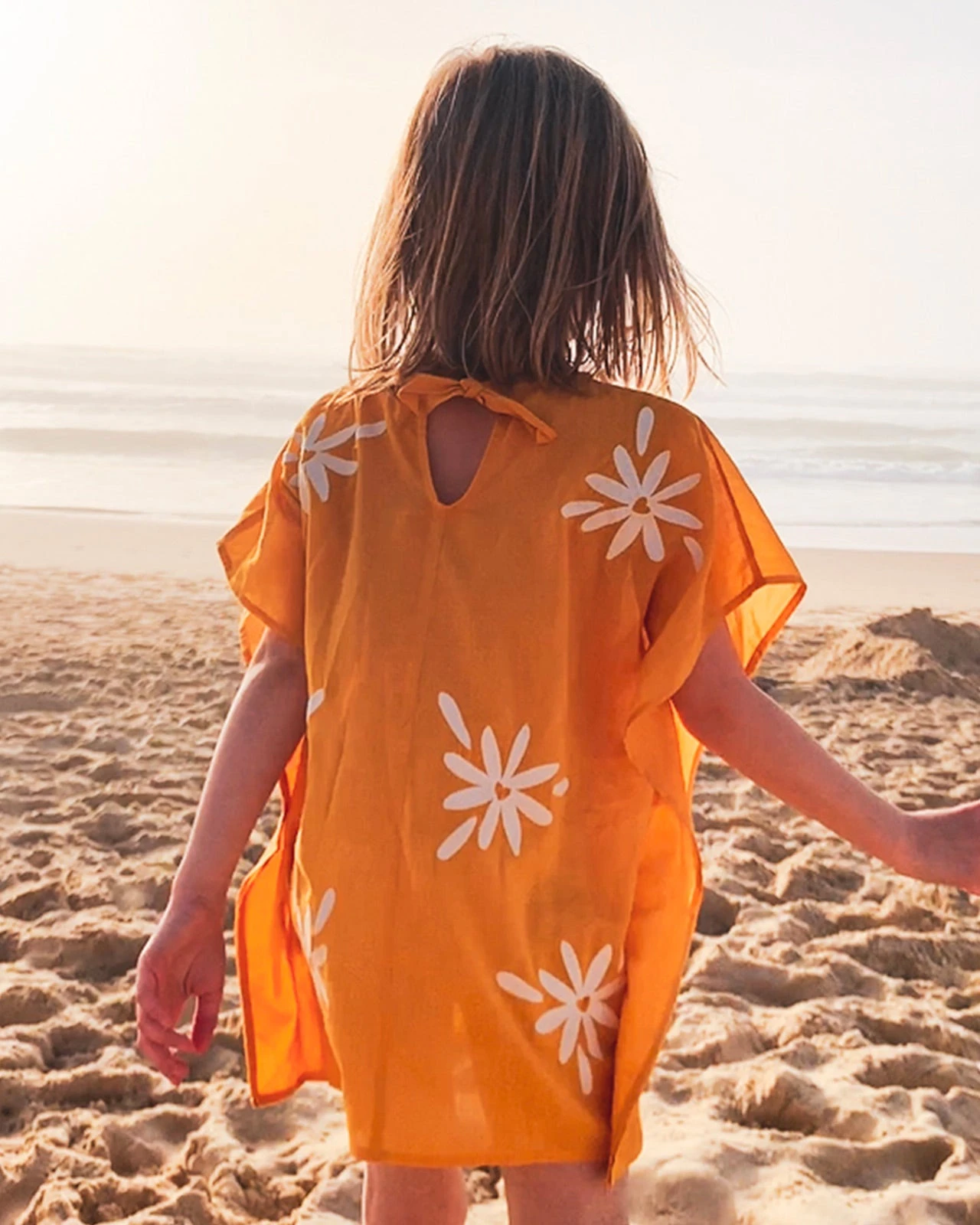 Pour les minis, on a imaginé un caftan brodé de pâquerettes XXL aussi frais que leurs sourires.