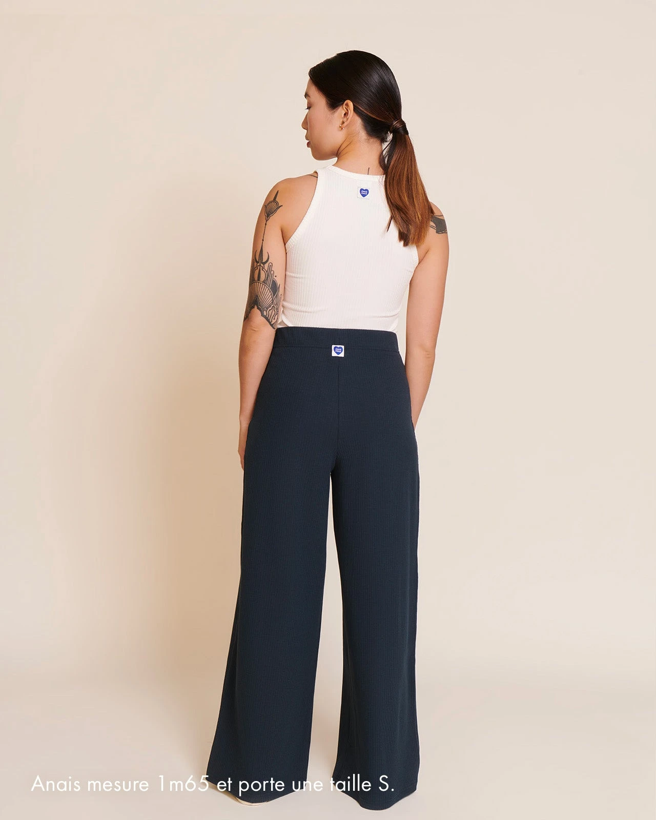 Un seconde peau en blanc et marine, sexy lady, sous une chemise ouverte. Pour être libre dans son corps et dans son jersey loukoum.