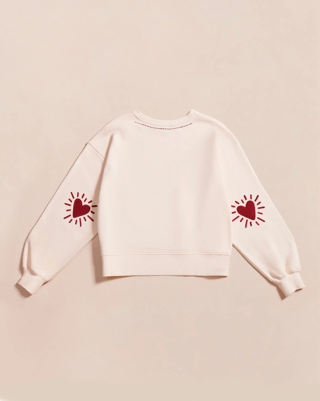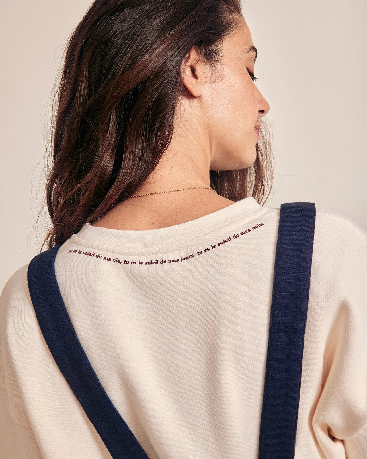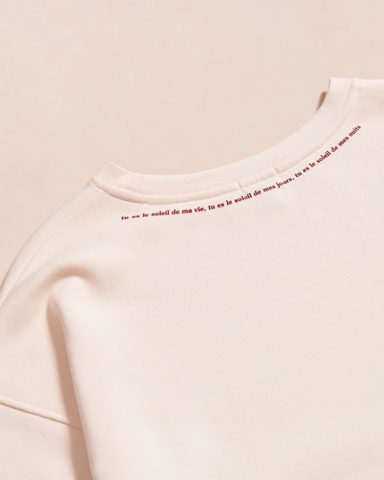 – « Tu es le soleil de ma vie, tu es le soleil de mes jours, tu es le soleil de mes nuits. » imprimé sous le col dans le dos
