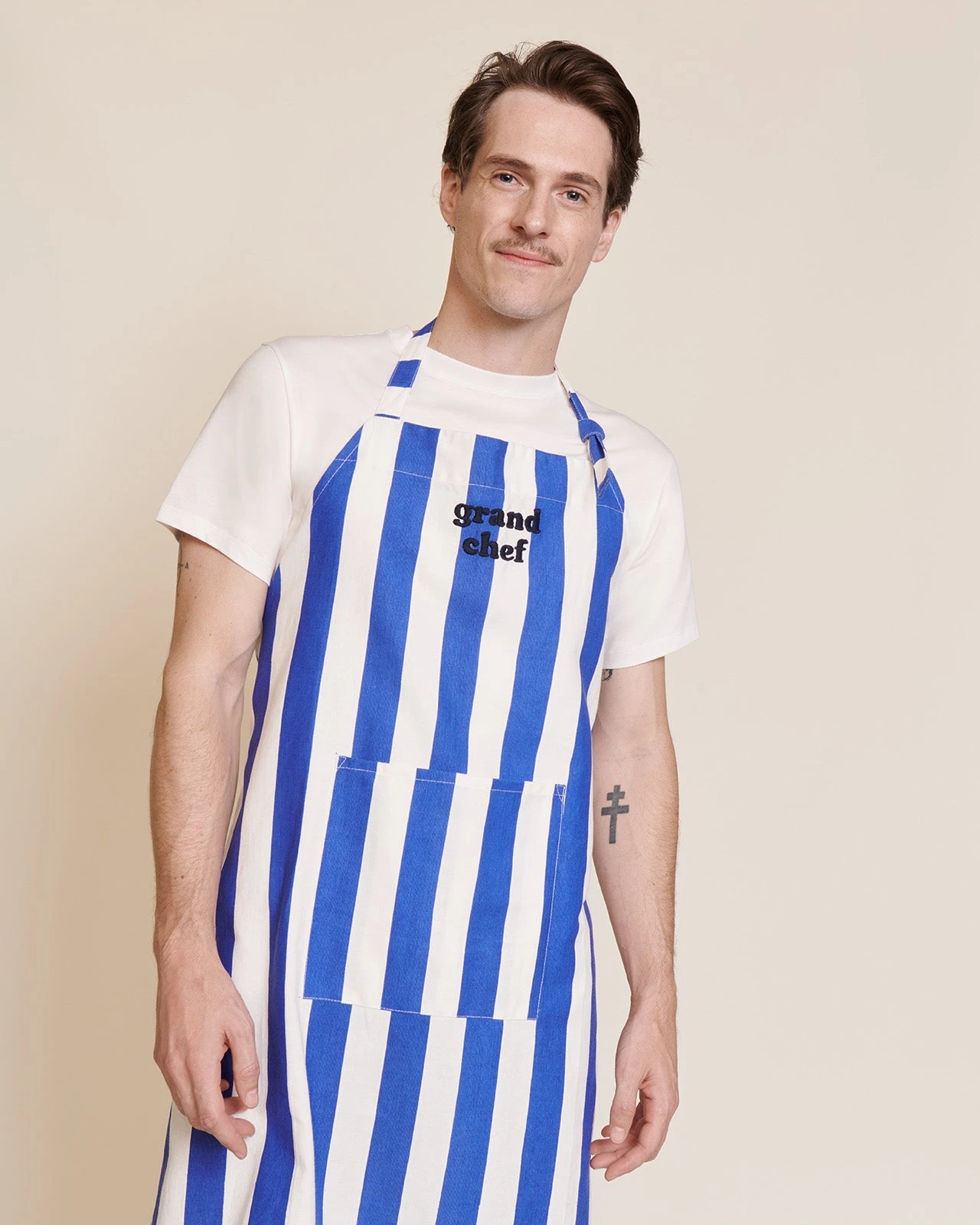 – À porter en famille avec les tabliers « Grande cheffe » femme et « Petite cheffe » enfant.