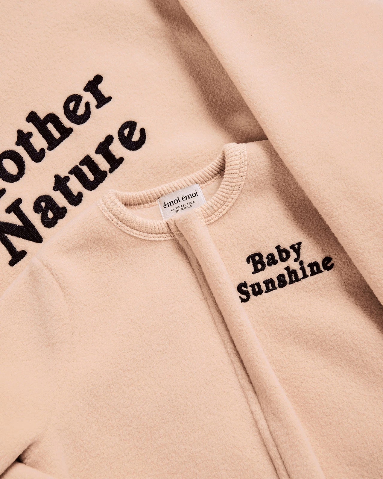 Et pour les mini mini, on a brodé “Baby Sunshine” sur une combi qui réchauffe les coeurs et les cuissots.