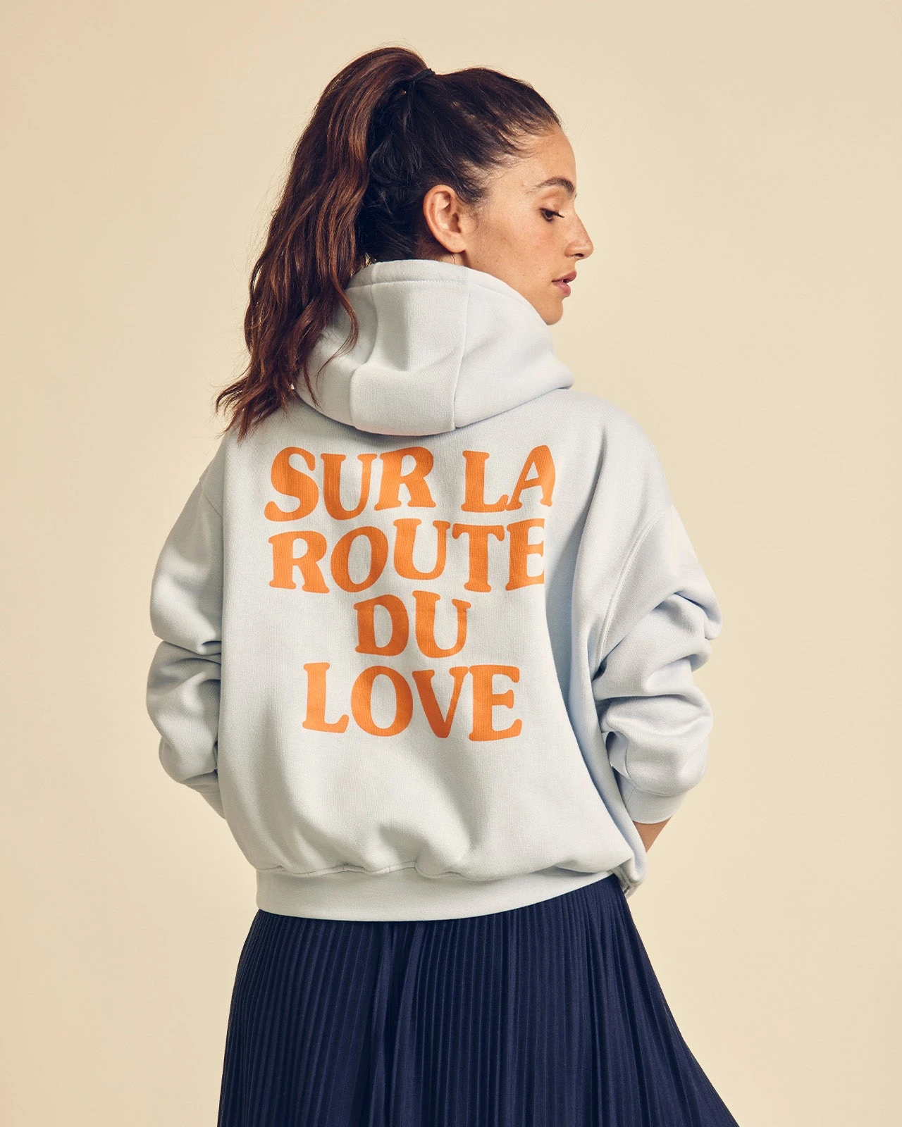 Pour le porter « loose » prenez votre taille habituelle. Si vous souhaitez le porter près du corps, nous vous conseillons de prendre une taille en dessous de votre taille habituelle.