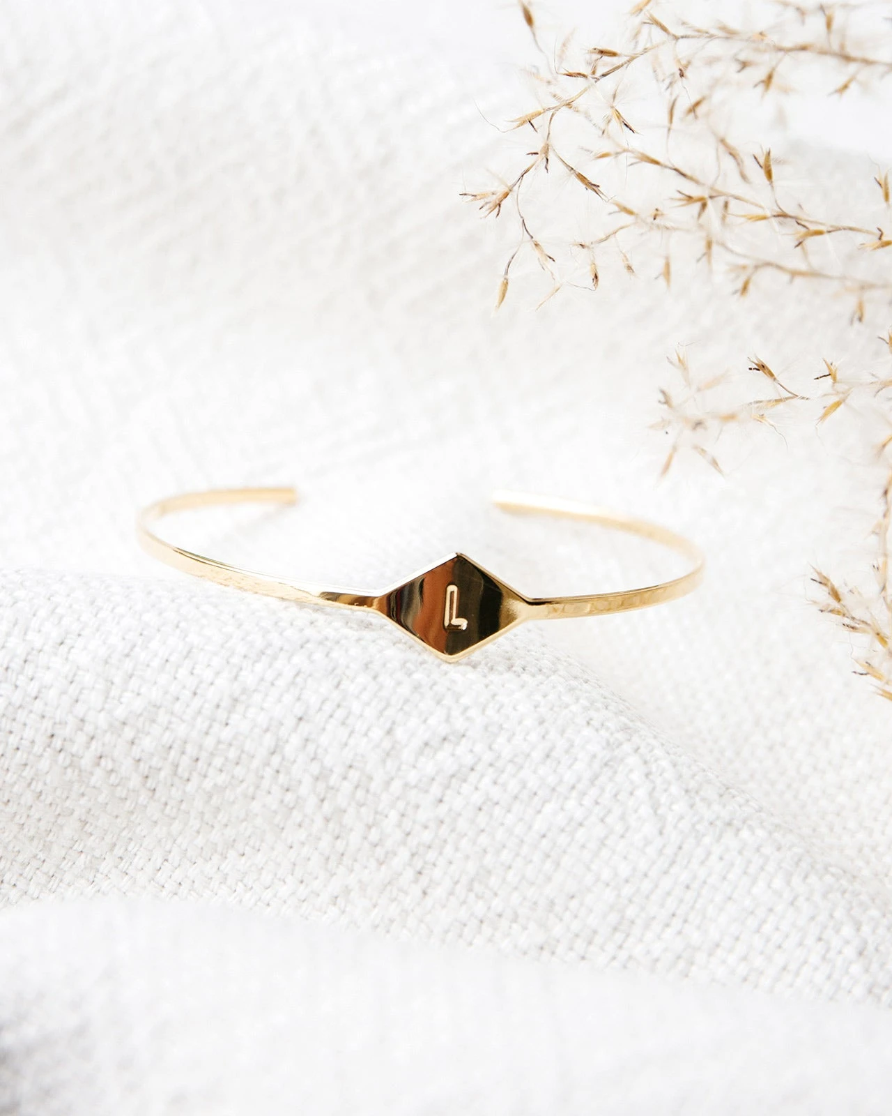 Nos joncs sont rêvés, assemblés et dorés à l’or fin 24 carats dans nos ateliers du 18ème arrondissement de Paris. Nous avons gravé chaque lettre de l’alphabet.