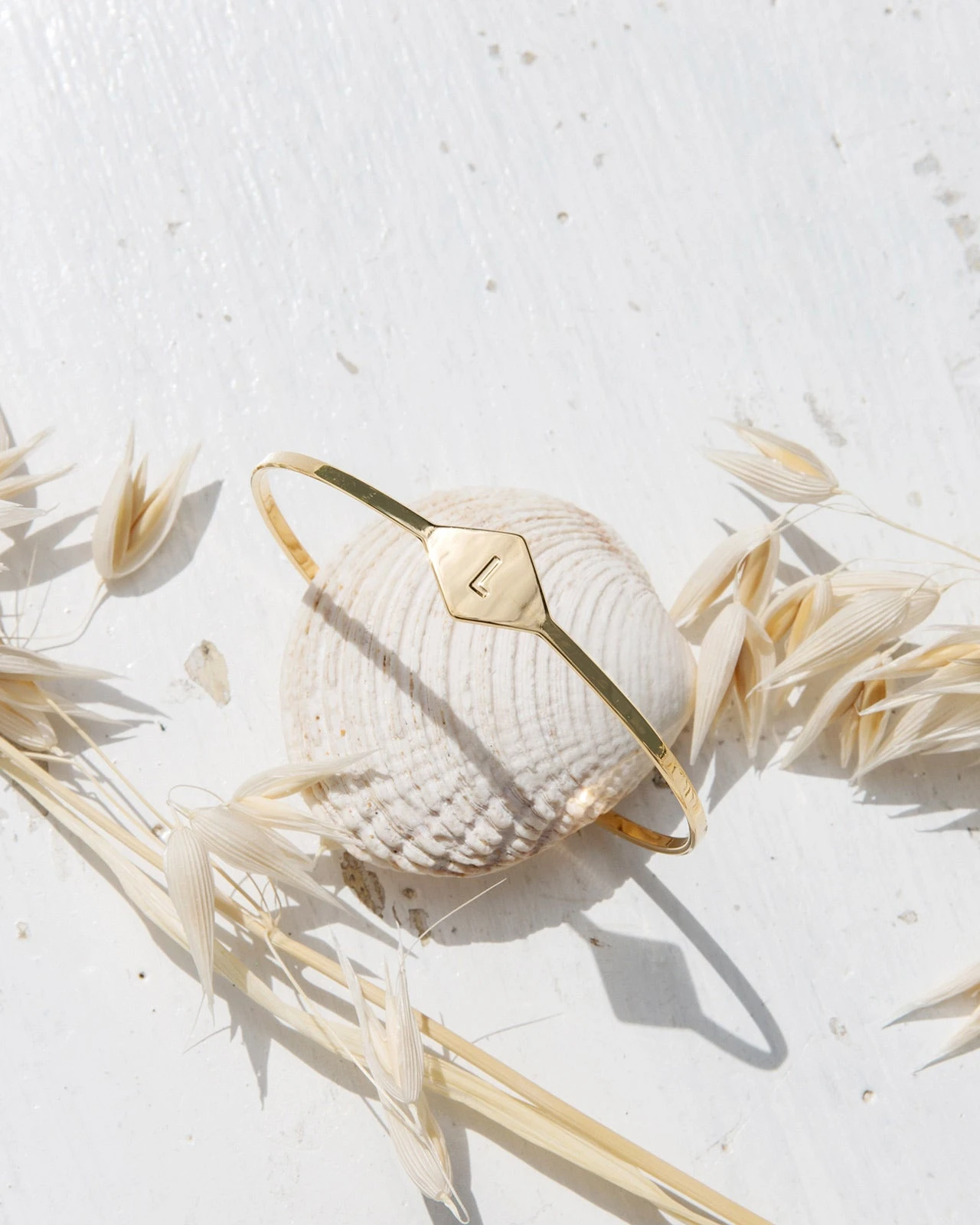 On rêvait d’un bijou épuré, fin et moderne, pour valoriser l’essentiel : l’initiale d’un prénom qui nous est cher, à porter contre soi…