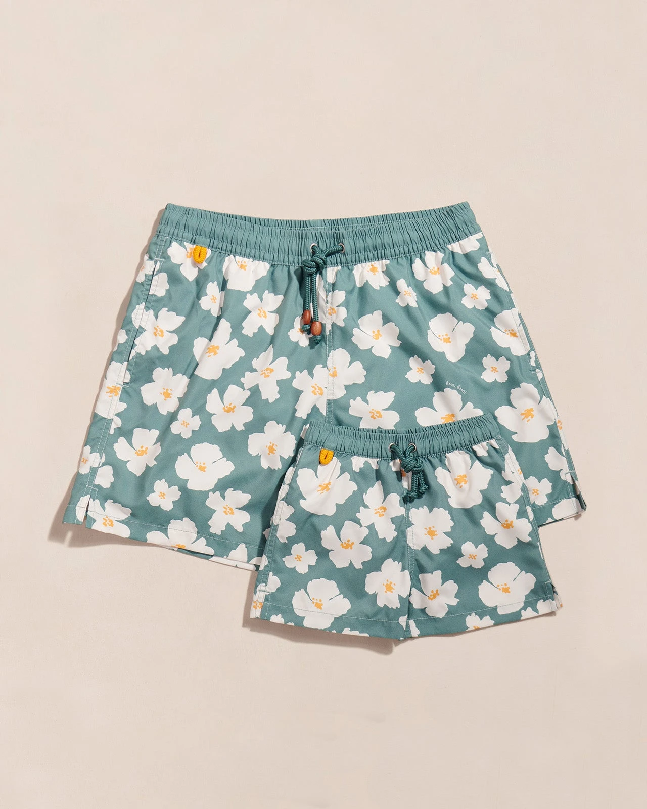 Cette année, on décline les shorts de bain homme et enfant en anémones olive. Le coloris de l’été. À porter en total look anémones olive (avec la robe Rosita chez la femme) ou à mix & matcher avec nos anémones marine cultes.