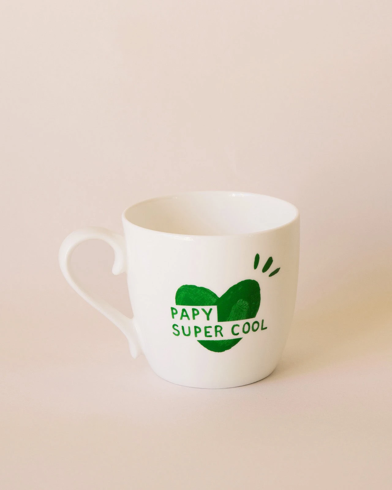 – Impression Coeur Signature en coup de pinceau « Papy super cool » vert