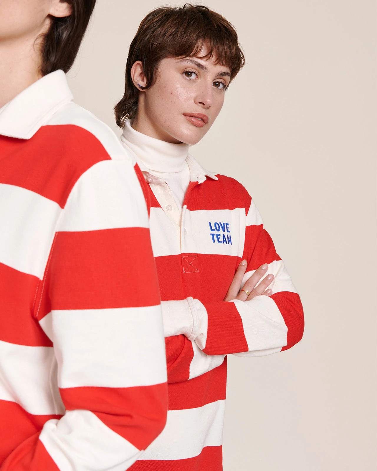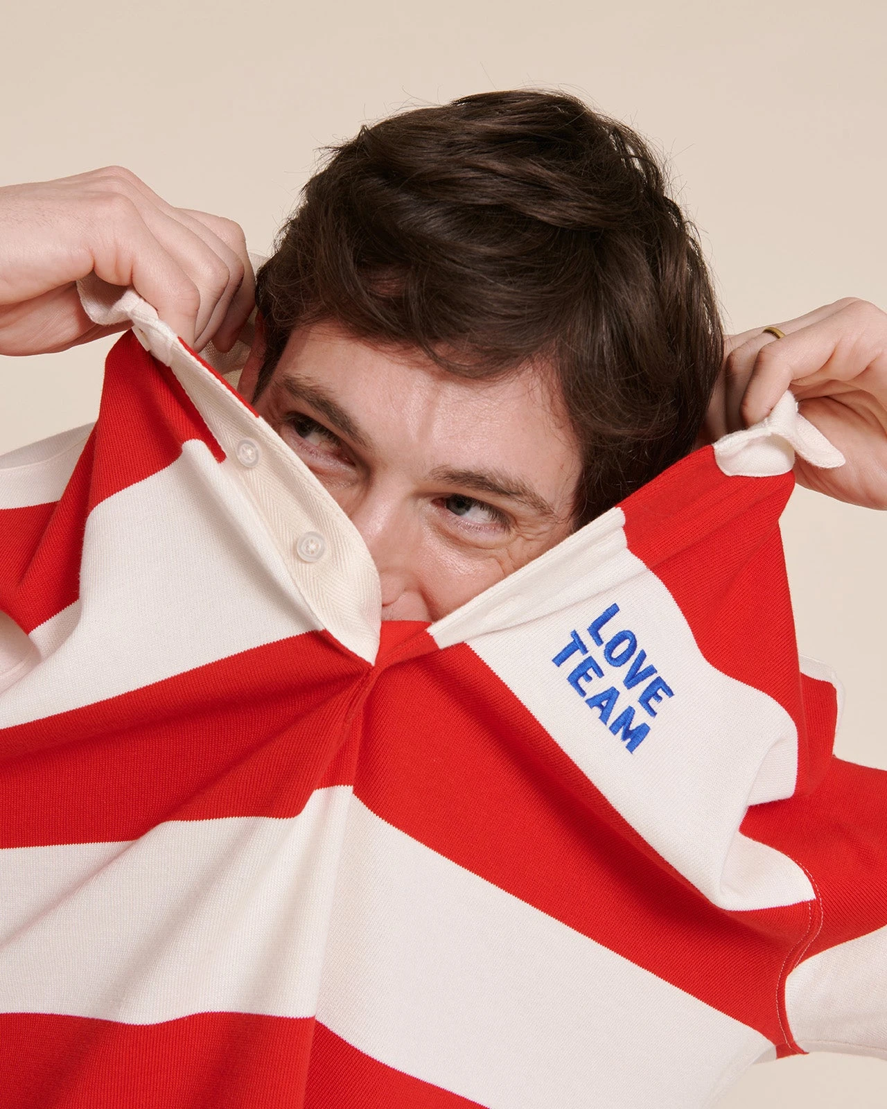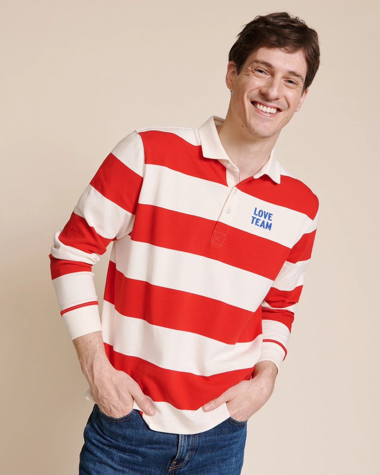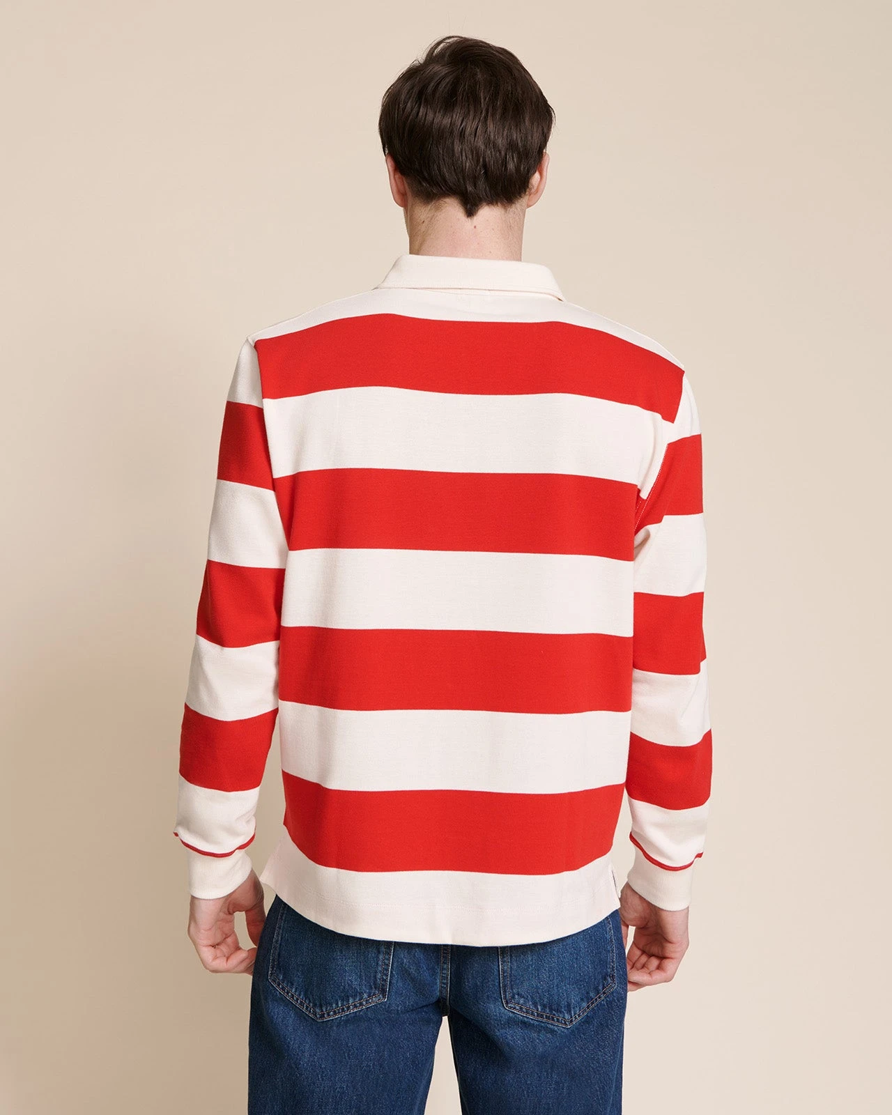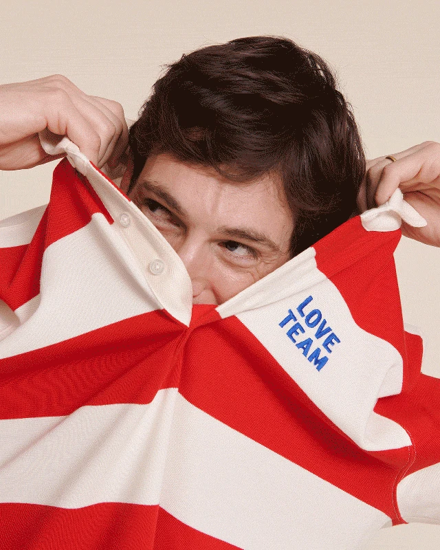 – Larges rayures rugby rouges et crèmes