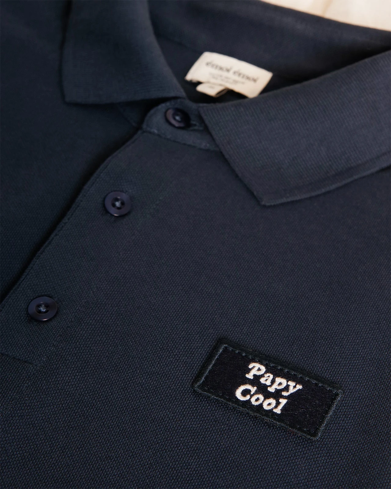 – Belle broderie sur patch « Papy cool » positionnĂ©e sur le coeur