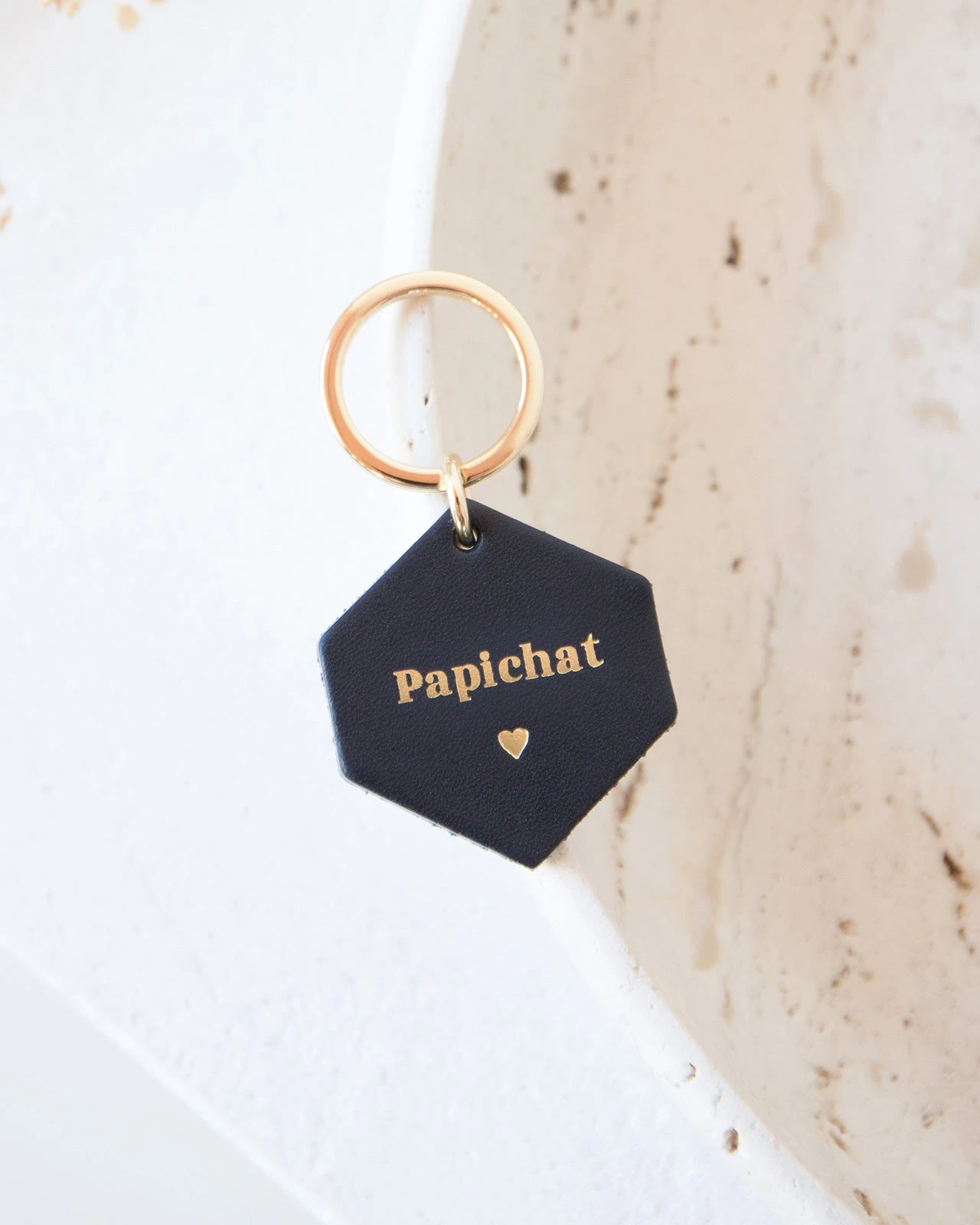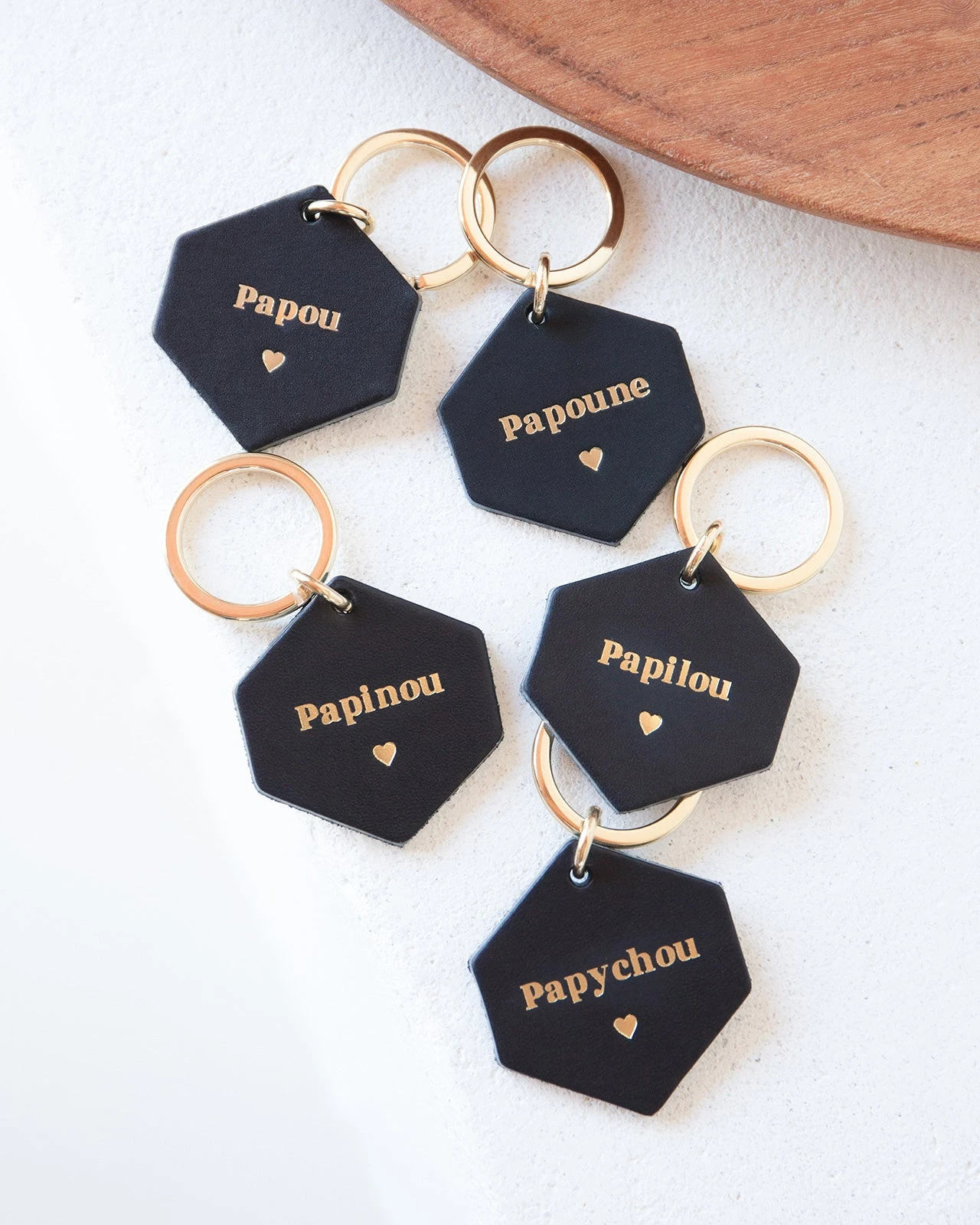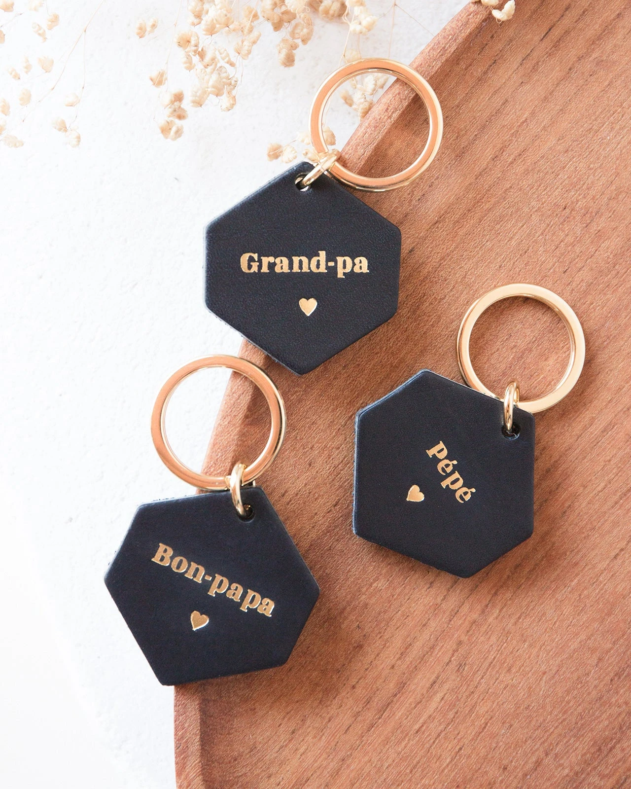 – Porte-clé hexagonal 100 % cuir, tannage végétal.
