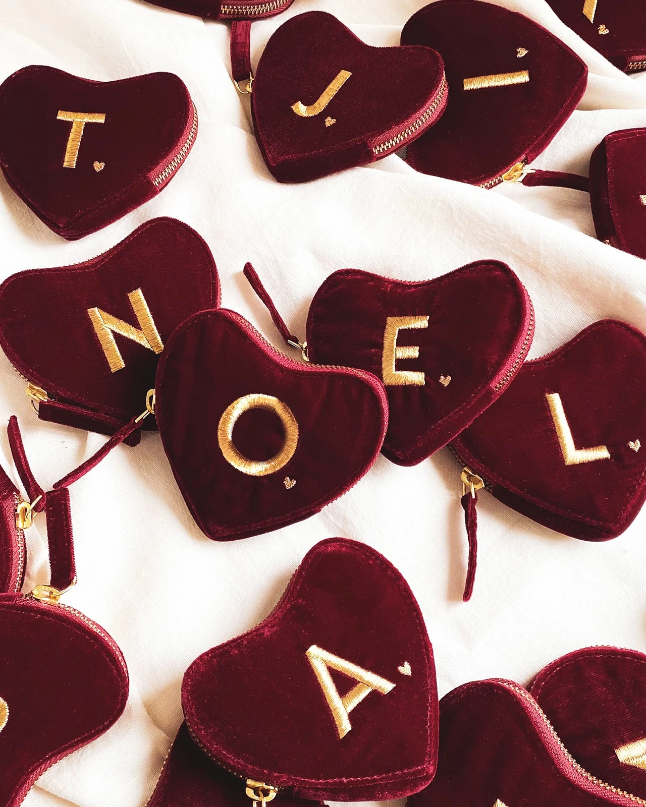 Avec la première lettre de son prénom brodé juste à côté d’un cœur doré.