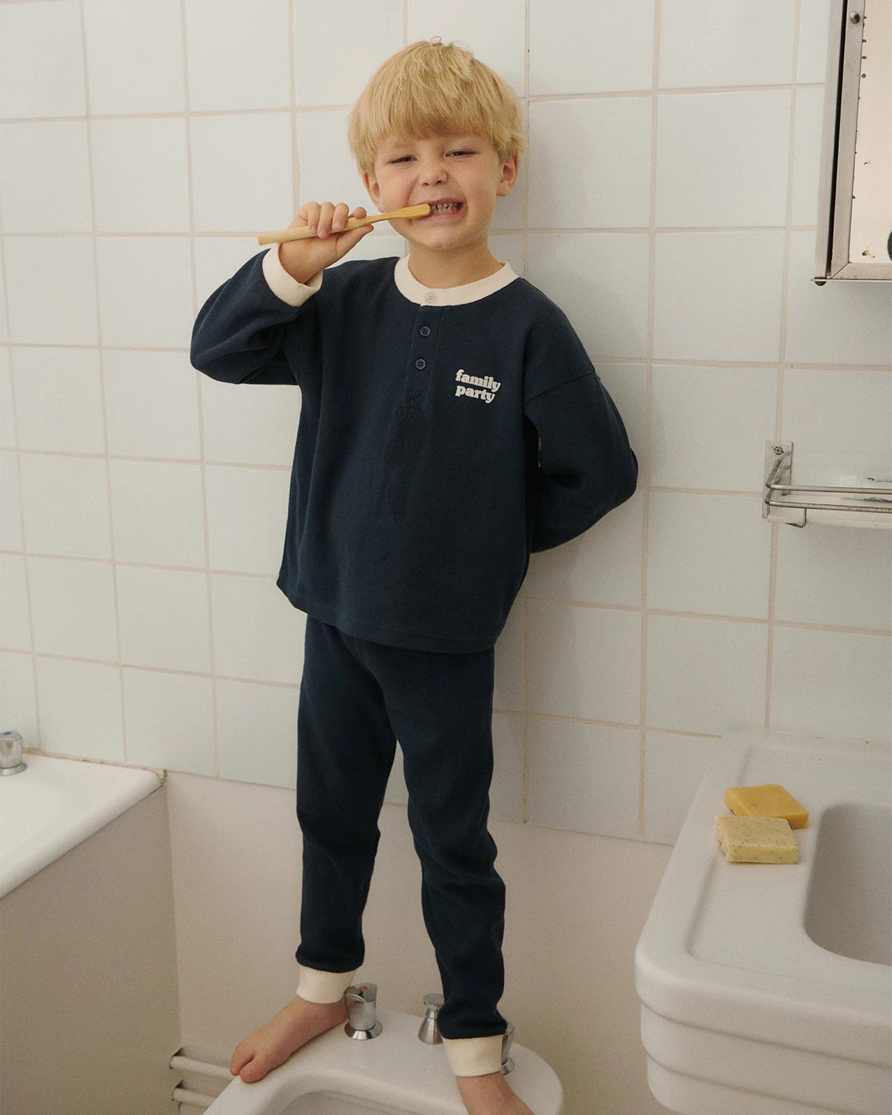 C’est l’histoire d’un pyjama doux comme une nuit de 12h. Des coupes de rêves pour s’étirer, sauter sur le lit, dormir en diago et se lever au chaud. Un coton bio nid d’abeille certifié GOTS et fabriqué tout près, à Porto.