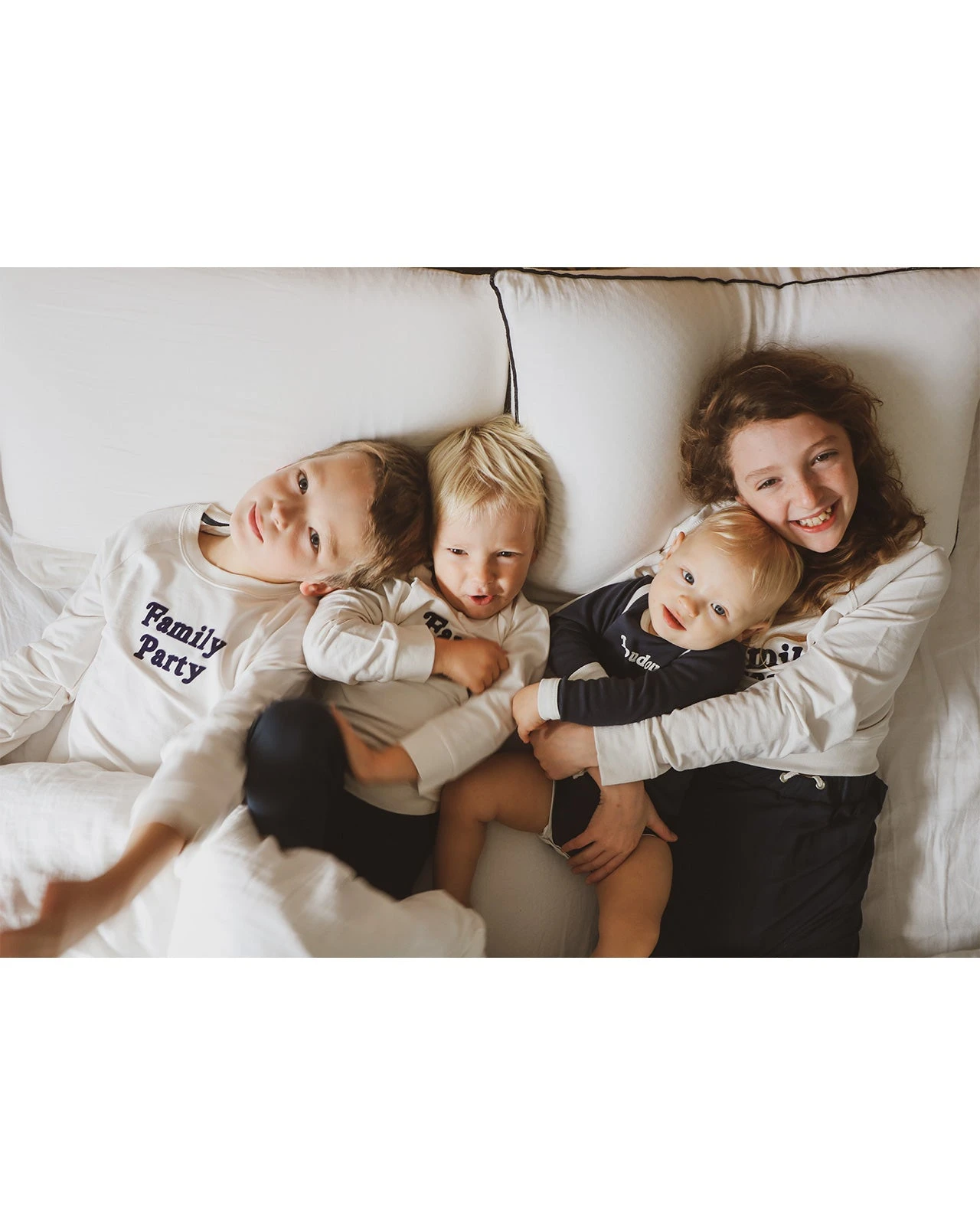 Chez Ă©moi Ă©moi, on sait que les plus beaux moments en famille se vivent en pyjama. Le soir, pour lire les plus belles histoires. Et le matin, collĂ©s-serrĂ©s, dans le lit des parents #Ă©videmment. Alors, on a confectionnĂ© le pyjama parfait. Celui qui cĂ©lĂšbre les Family (Pyjama) Party, plonge les minis et leurs parents dans un sommeil profond avant mĂȘme d’avoir comptĂ© trois moutons et sert un max de cĂąlins au petit-dĂ©jeuner. Ou sous la couette pour la grasse-mat’collĂ©s-serrĂ©s.
