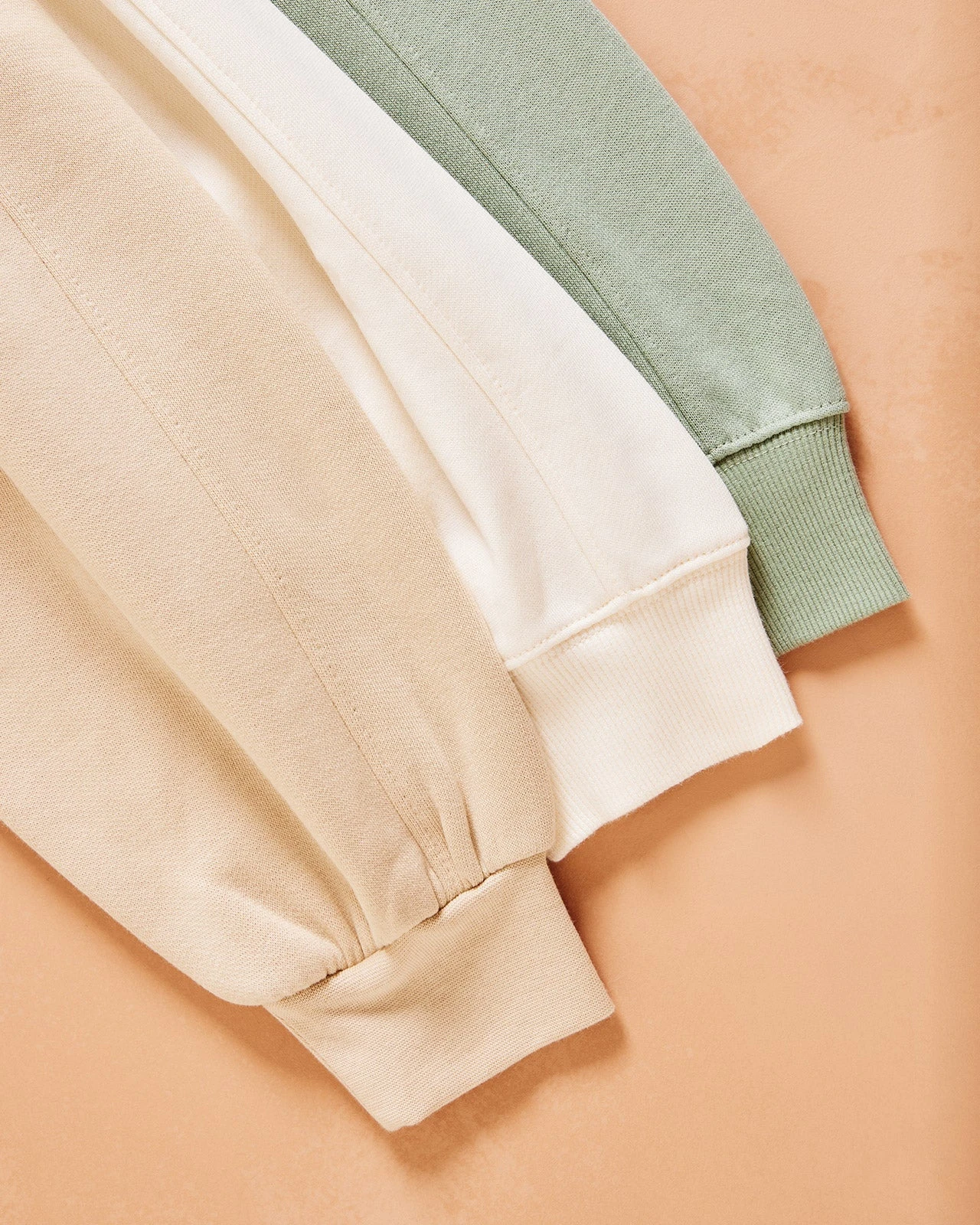 – Sweat en molleton non gratté, 100% coton biologique GOTS tout doux à l’intérieur.