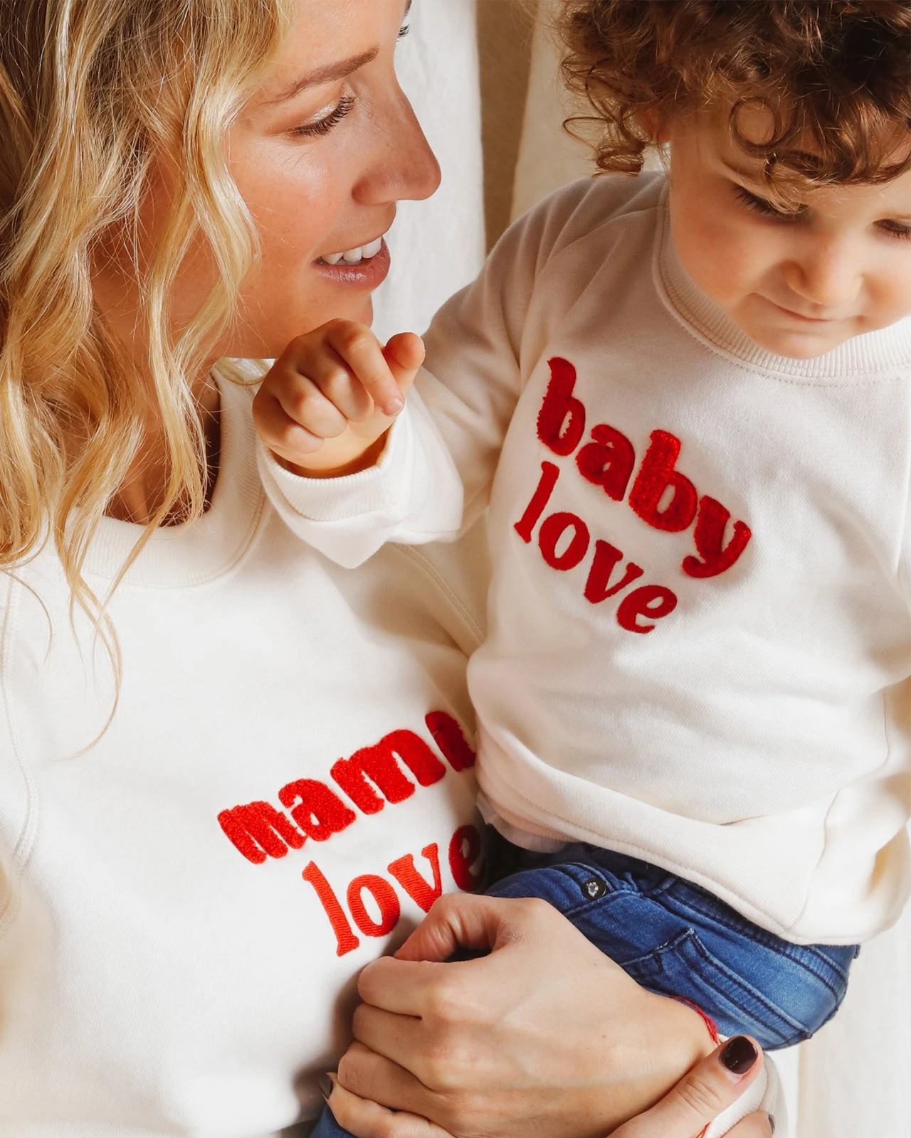 – A porter en famille avec le sweat « Mamie Love » femme, et « Baby Love » enfant