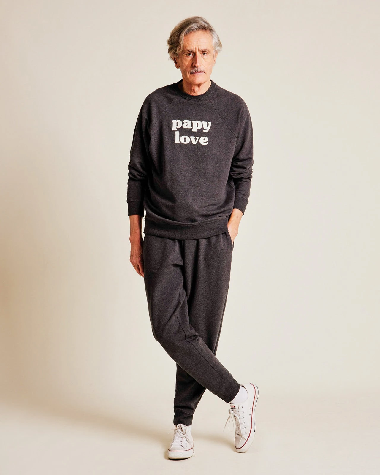 – À porter en famille : ensembles gris anthracite homme, femme et enfant disponibles avec nos imprimés « Love »