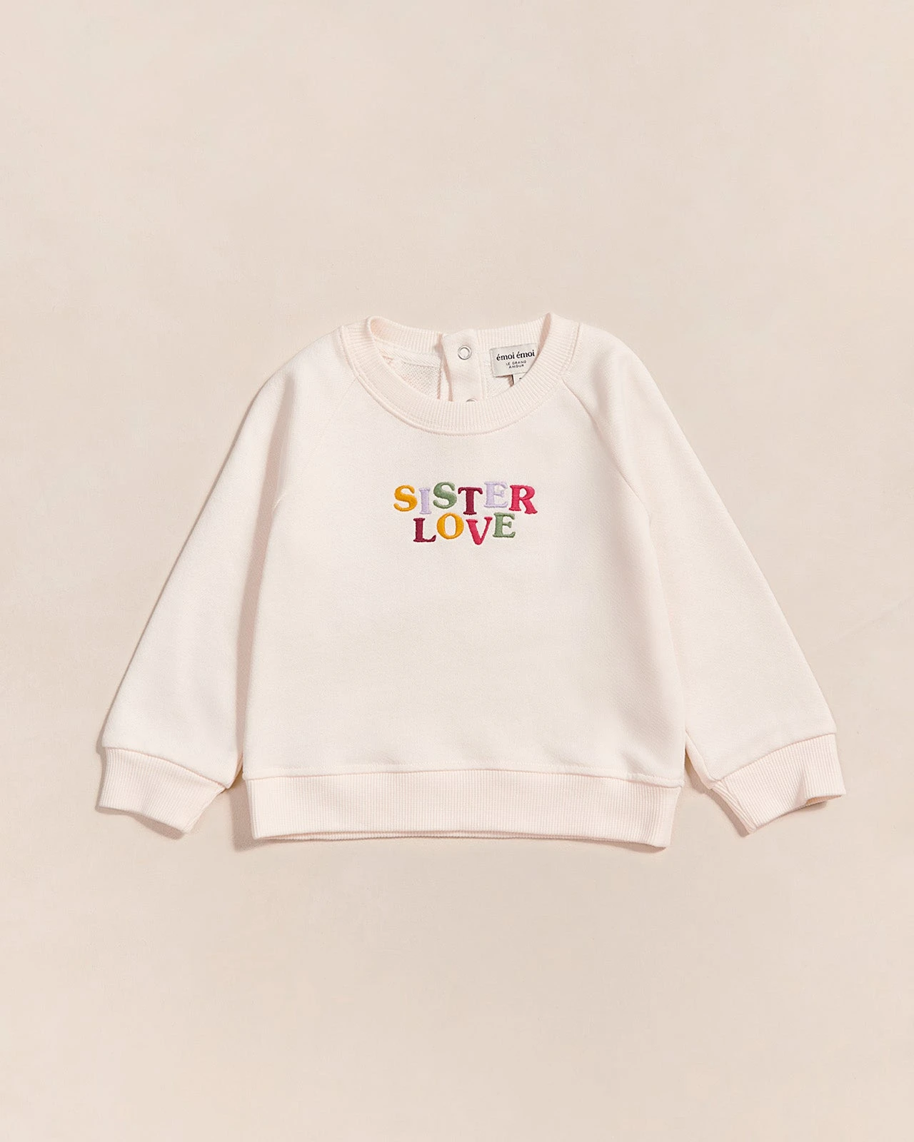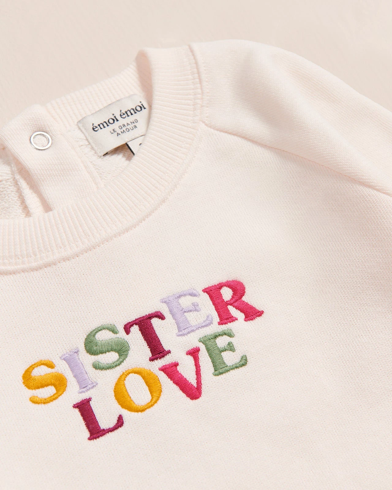 Une broderie multicolore déclinée chez mama love, baby love, sister, love, brother love et mamie love.