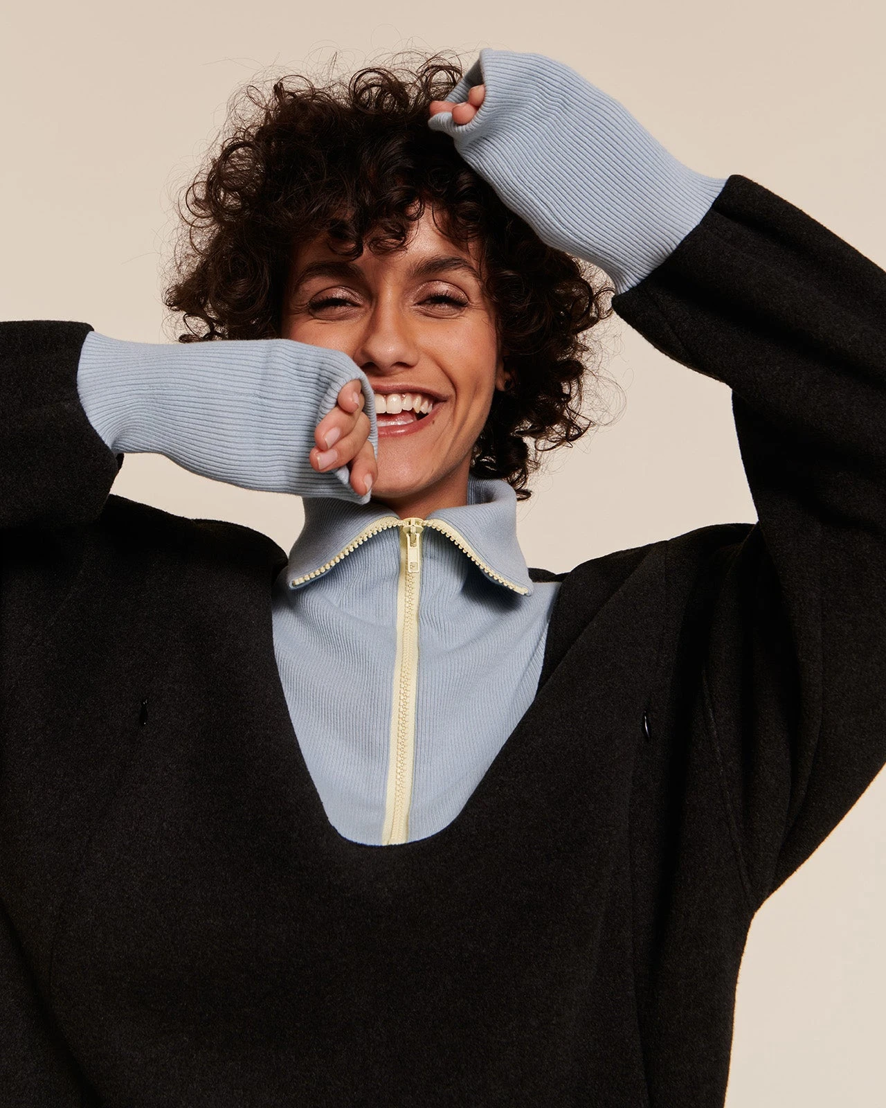 – Sweat zippé en polaire 100% recyclée, certifiée RCS, toute douce