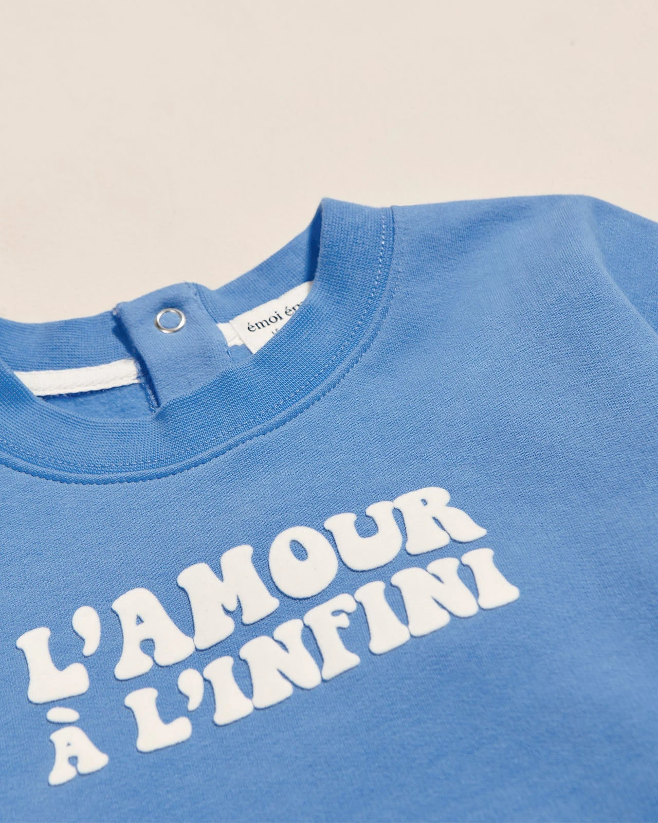– Flocage en velours « L’amour à l’infini » centré sur le devant