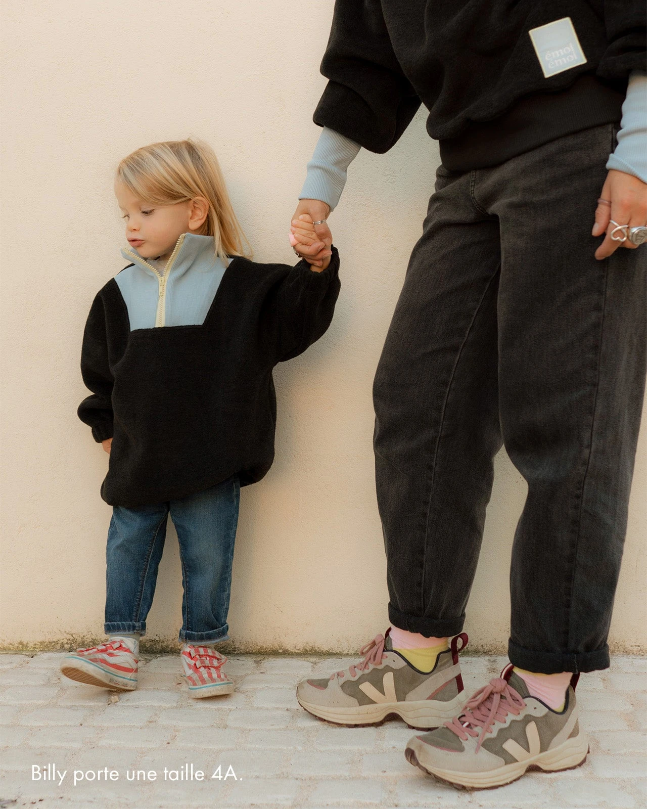 – Sweat zippé en polaire 100% recyclée, certifiée RCS, toute douce