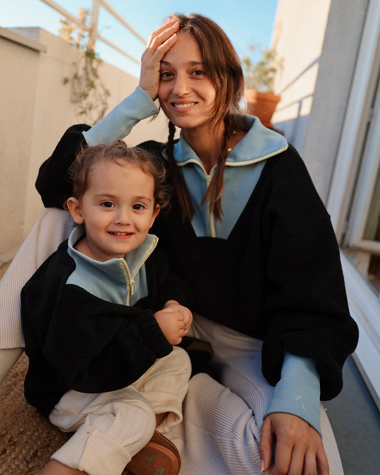 Nos sweats Sun taillent très oversize (pour pouvoir le porter comme un manteau sur un pull ou pendant plusieurs années). Si vous voulez qu’il soit porté plus ajusté, choisissez une taille en-dessous