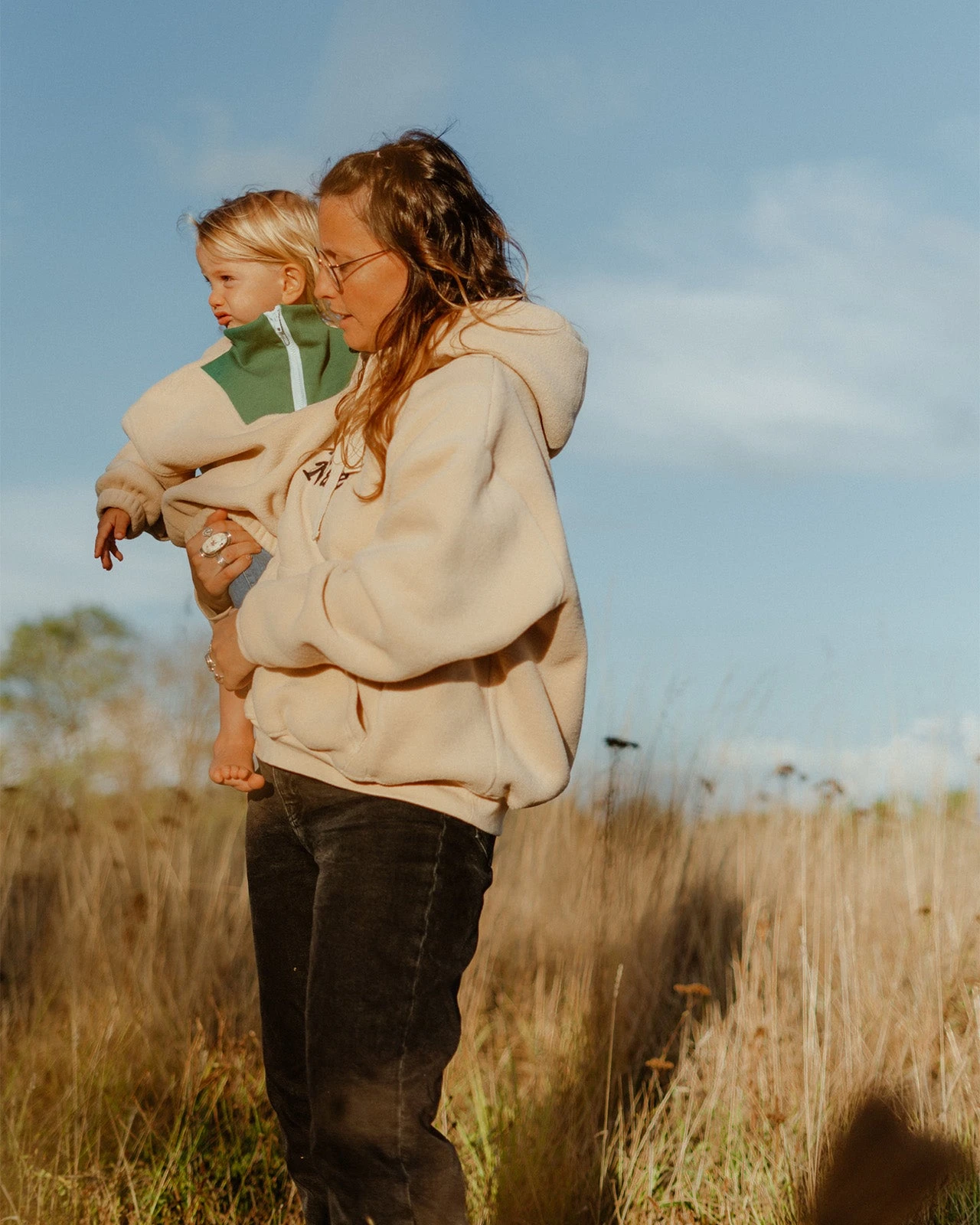 Nos sweats Sun taillent très oversize (pour pouvoir le porter comme un manteau sur un pull ou pendant plusieurs années). Si vous voulez qu’il soit porté plus ajusté, choisissez une taille en-dessous.