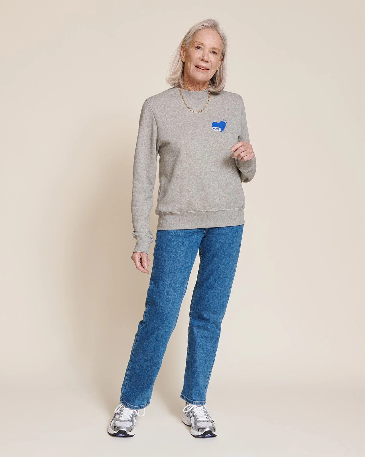 – Belle broderie bleu signature « We are family » sur le cœur
