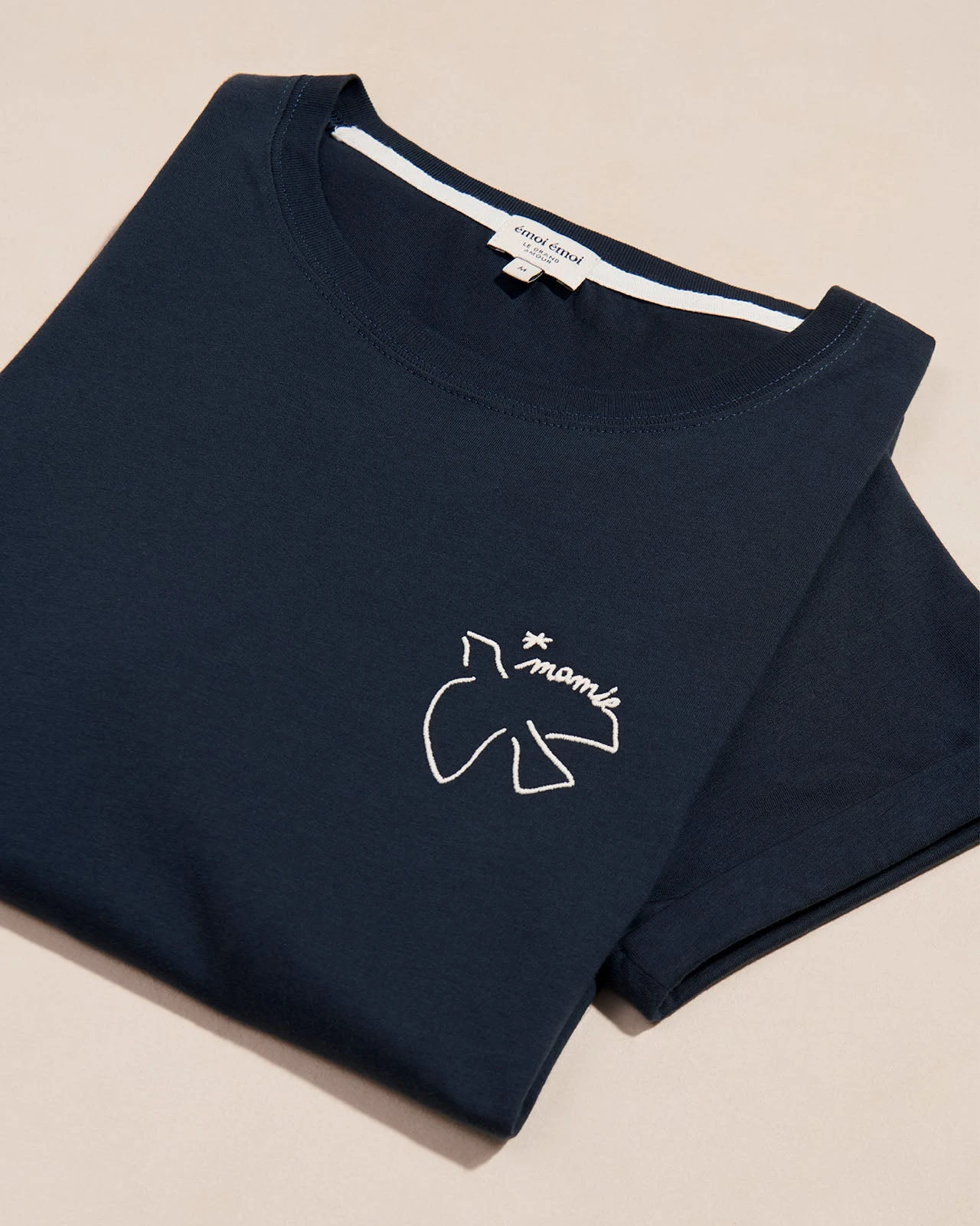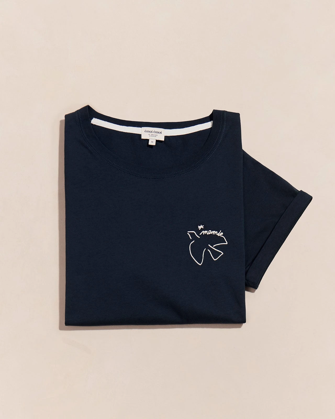 – Belle broderie signature « Mamie bird », positionnée sur le coeur.
