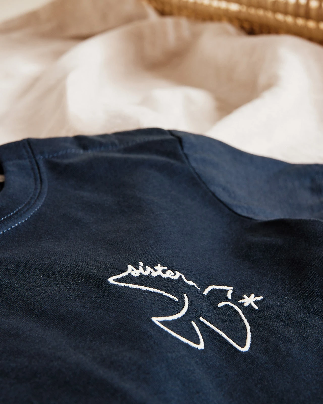 – Belle broderie signature « Sister bird », positionnée sur le coeur.
